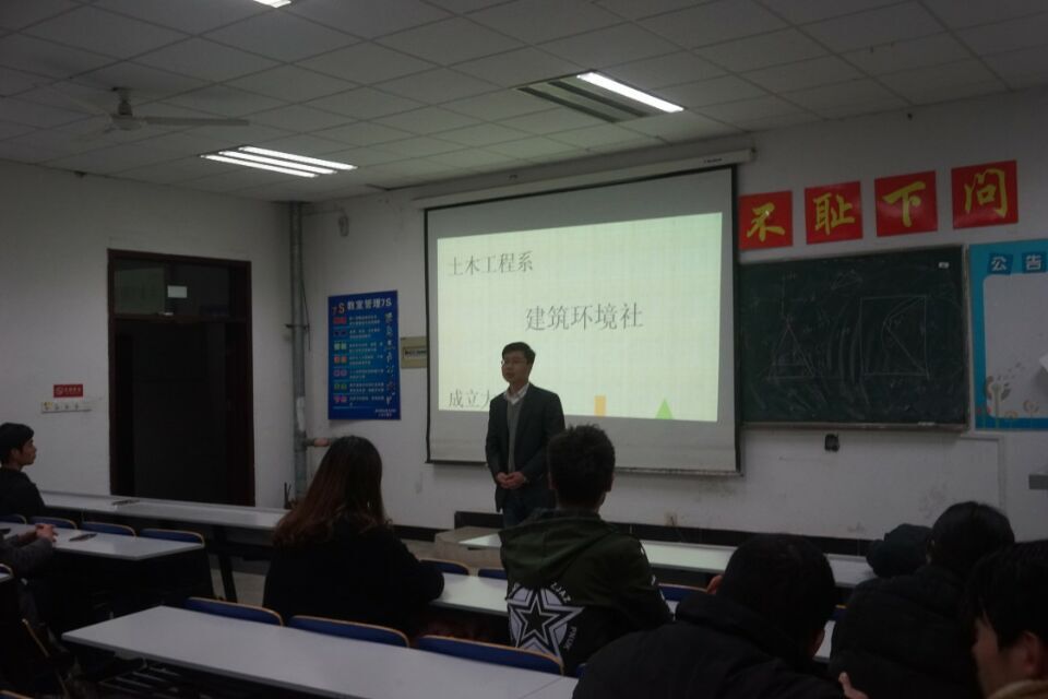 目前,土木工程系已经有测量社、建材社两个专业性社团,建筑环境社的成立,让土木系专业性社团大家庭又增添了新成员。