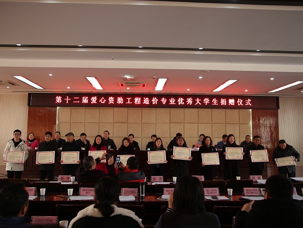 12月5日下午,滁州市建设工程造价管理协会对金沙威尼斯官网建筑工程学院爱心资助活动在学校综合楼5楼报告厅顺利举行。校党委书记李柱梁出席会议,校党委副书记杨家庆市出席会议并讲话。城乡规划建设委员会党组成员、总工程师吴晓丽,市造价站党总支书记张正金,市造价站站长史正海,副站长王瑾、滁州市广播电视台社教中心负责人朱晓燕、市造价协会会长郝勇等应邀出席。市造价站全体人员、全市各造价咨询企业负责人、建筑工程学院院长朱永祥、书记刘文元及受助学生参加了本次爱心助学捐赠活动。会议由校纪委书记杨华龙主持。