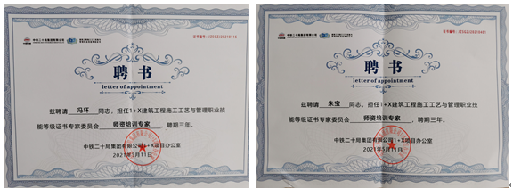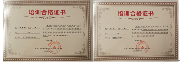 通过参加此次培训,进一步促进“1+X”证书制度试点第四批职业技能等级证书申报工作。两位参会教师顺利通过了培训单位考核,并获得由中铁二十局集团有限公司1+X项目办公室颁发培训合格证书。