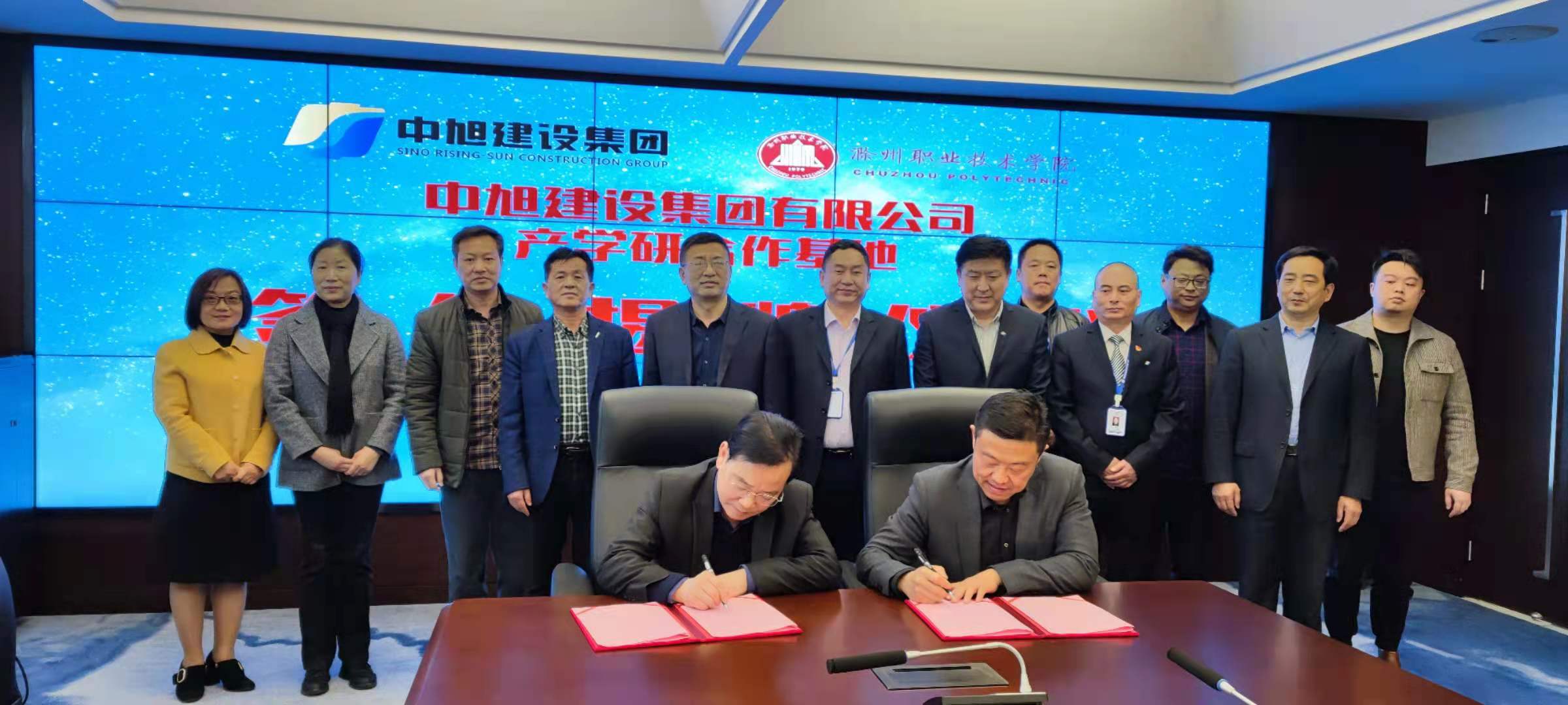 3月31日下午,金沙威尼斯官网与中旭建设集团有限公司产学研合作签约仪式在中旭集团会议室举行。校党委书记李柱梁,校党委委员、校长助理、滁州职教集团秘书长、招生就业处处长穆松,中旭集团公司董事长张旭东,总裁王恩陆,党委副书记吴常永,副总裁闵志、马正刚,党委委员、纪委副书记赵核平,开发部经理韩嵘等出席了签约仪式。建筑工程学院院长朱永祥、建筑工程学院党总支书记刘文元参加了会议。