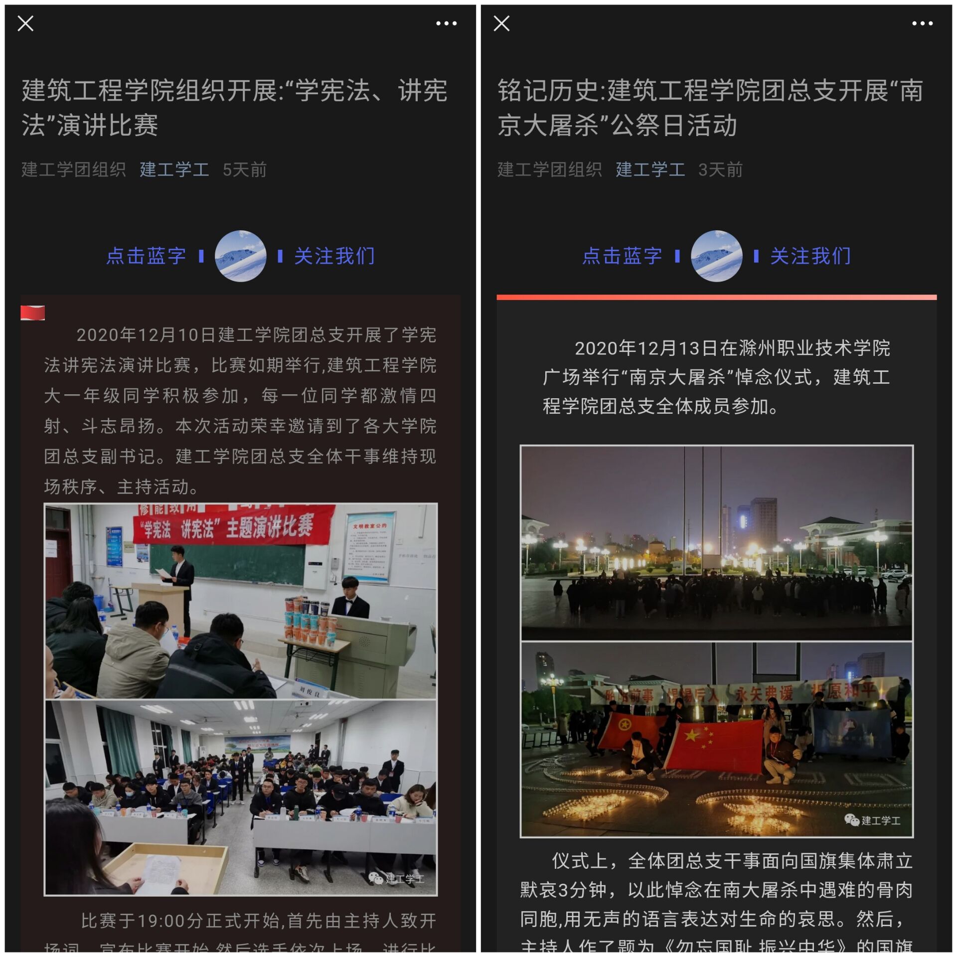 2020年对“滁州职院土木青年"公众号来说,是最重要的一年,在今年,前期的一切谋划影响着后面工作的进展和发展方向。在建筑工程学院团总支、宣传部的正确领导下,我们各方面的工作都有序地铺开。