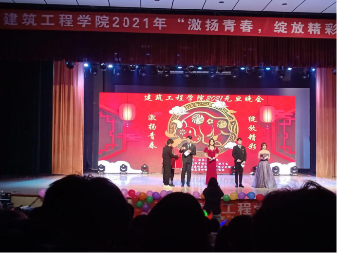 12月26日晚,建筑工程学院以激扬青春,绽放精彩”为主题在大礼堂如期举行元旦晚会。出席本场晚会的有建筑工程学院党总支刘文元书记、商学院党总支李勇志书记、教授董波及建筑工程学院团总支负责老师晋文婷,还有学生会干部和可爱的同学们欢聚一堂观看晚会。