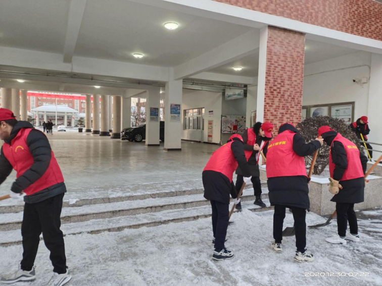 暴雪夜袭,12月30日,窗外一片银装素裹,整个金沙威尼斯欢乐娱人城内都铺满了白皑皑的厚积雪,路上已结成了雪冰。建工学院的志愿者们全员出动,像建工学院进发,纷纷扛起了铁锹参加了这场除雪攻坚大战。寒冷的天,总是在蛊惑着人们退缩。但建工学院的学院的志愿者丝毫没有退缩的意思,反而越战越勇。手上的推雪铲上下翻飞,没有一丝的闲散。地上的冰水与雪花相互融合,在冷风的煽动下,结成了顽固阵营,死死抓住地面,考验着人们的耐心与斗志。一人推不动,俩人上,大块推不动,分成小块。