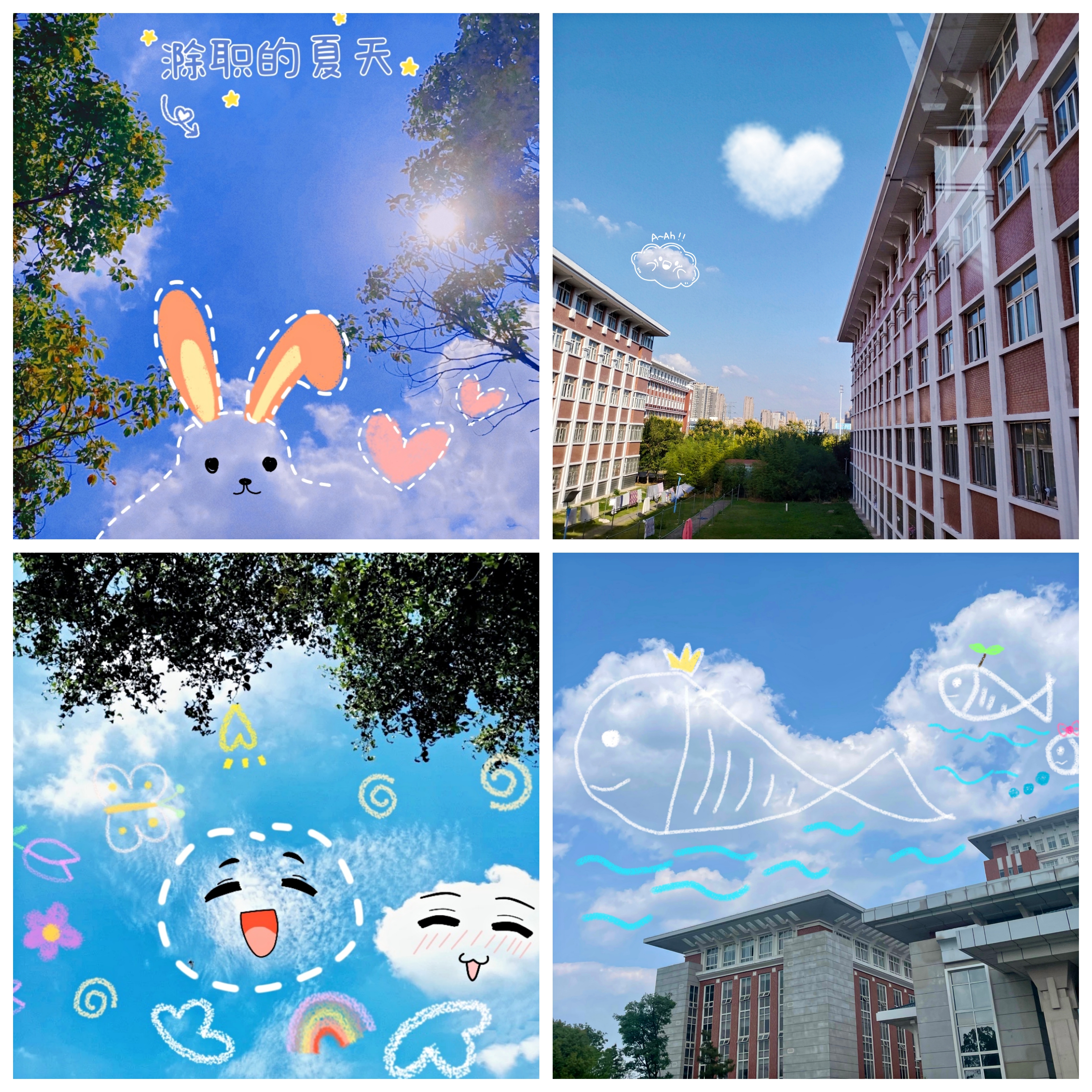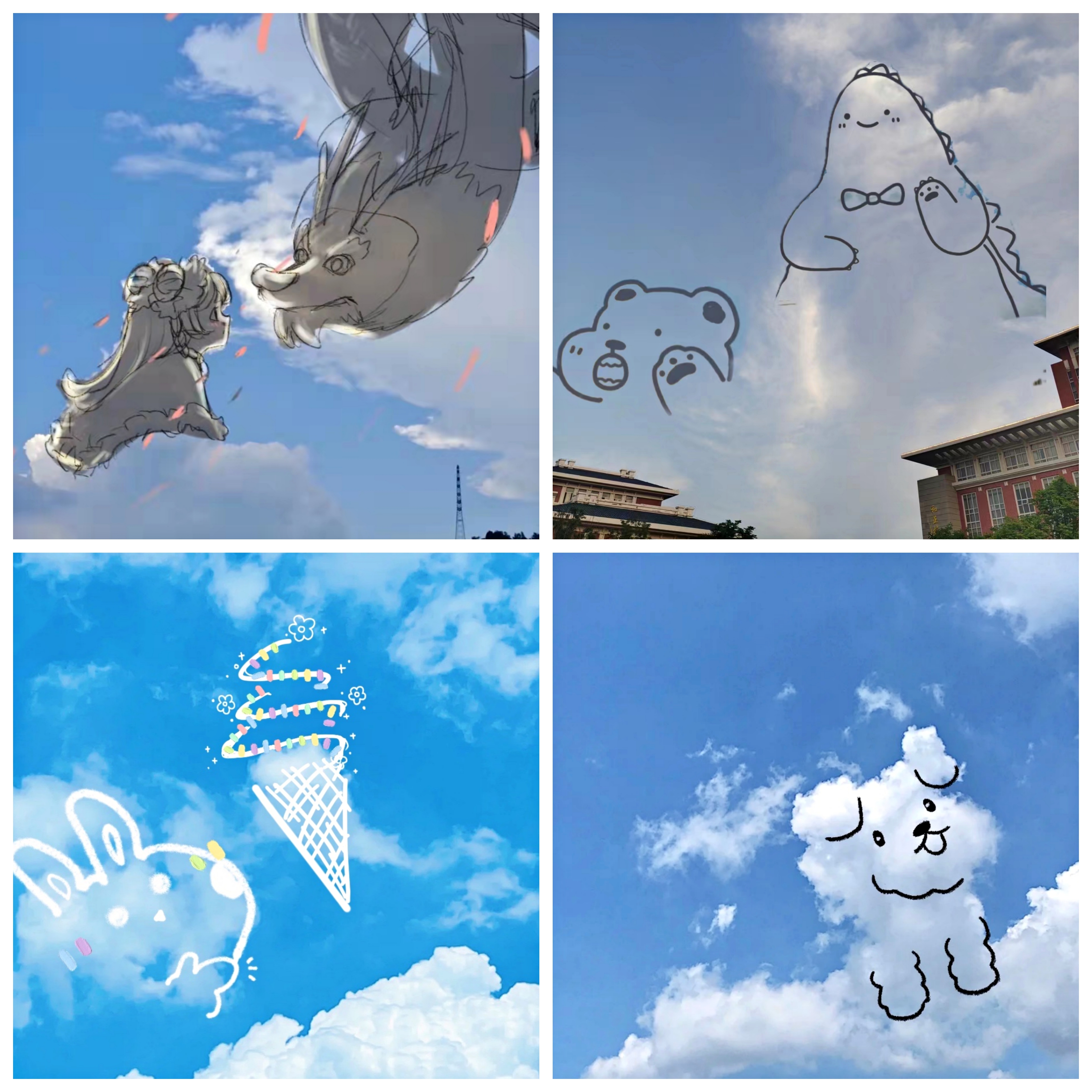 活动发出,同学们都踊跃参与。积极举起手机定格下校园内天空的独特瞬间,利用美图秀秀、醒图、ps等修图软件在拍下的照片上进行绘画涂鸦。抬头、定焦、成像,画笔轻描,云朵便有了更加具体有趣的模样,每一朵云朵都有着它们不一样的故事,同学们用各自独特的视角,描绘着心中最美好的画卷,用独具匠心的构思与创意,让创意的翅膀在云朵中遨游。