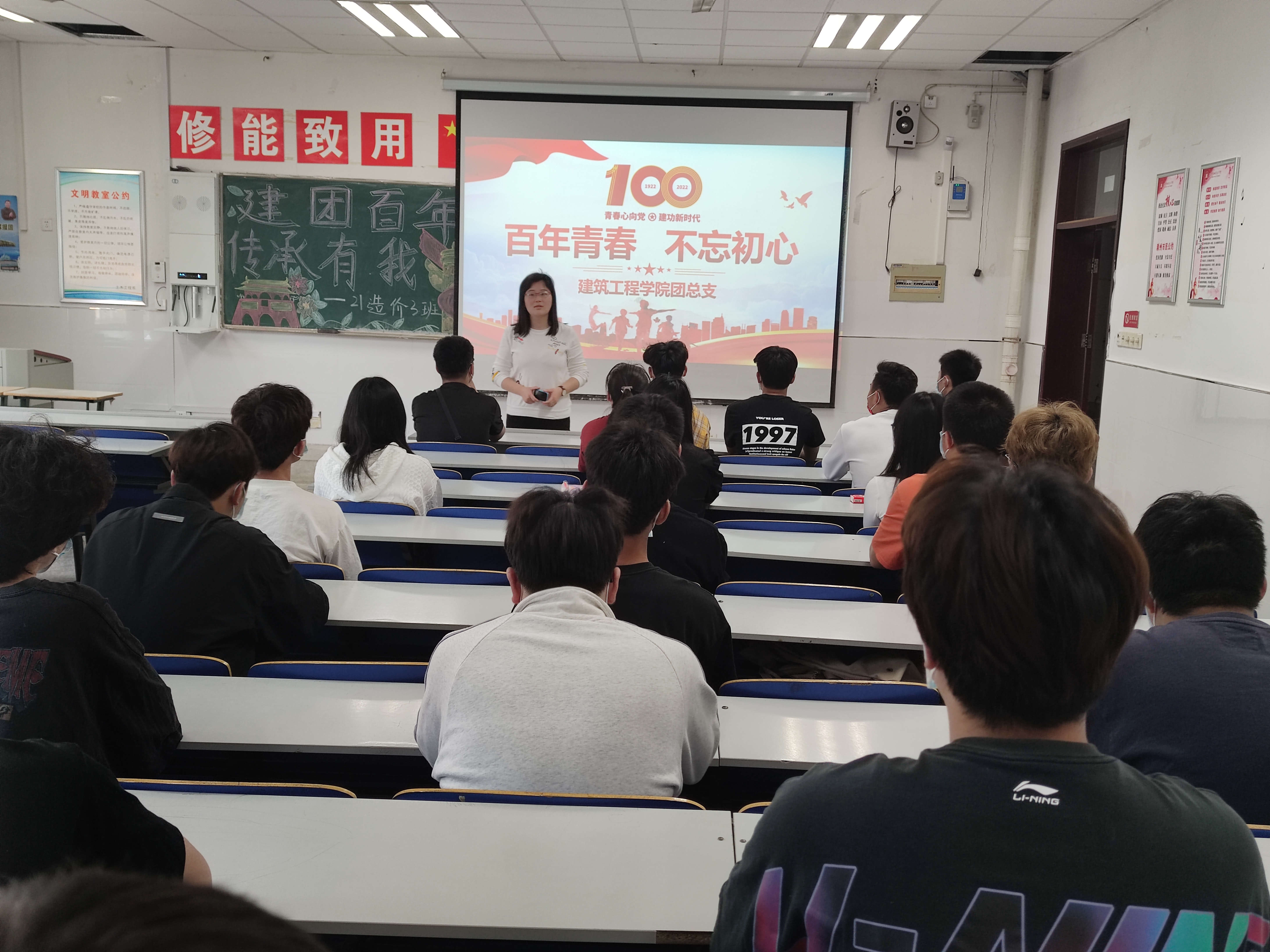 2022年是中国共产主义青年团成立100周年。回望百年,青春向党;百年青春,不忘初心。每一次搏击风浪的天空下,都激荡着青春的旋律;每一个勇毅前行的足迹中,都饱含着奋斗的艰辛。为庆祝中国共产主义青年团成立100周年,激昂青春奋斗,引导广大青年学子“不忘初心使命,不负时代韶华”,5月4日,建筑工程学院团总支书记谭康慧为入团积极分子及2021级建设工程监理团支部做题为“百年青春 不忘初心”的主题团课。