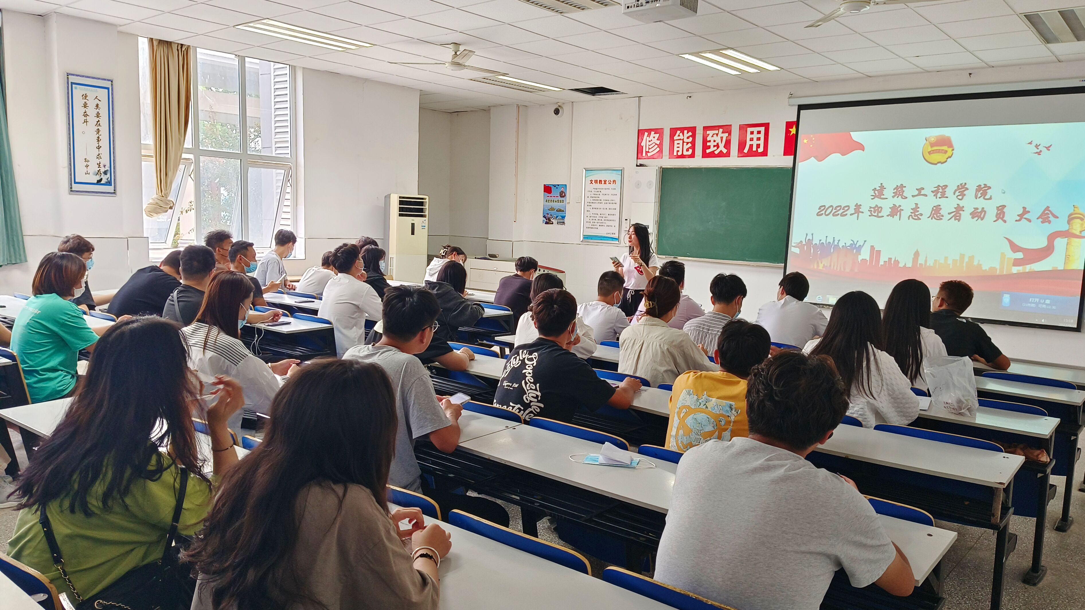 为贯彻落实金沙威尼斯官网关于疫情防控工作的相关部署,确保我院迎新工作安全有序、高效顺利的展开,9月20日,建筑工程学院在致学楼4119教室召开2022年迎新志愿者动员大会,全体迎新志愿者参加此次培训会,培训会由学院老师晋文婷主持。