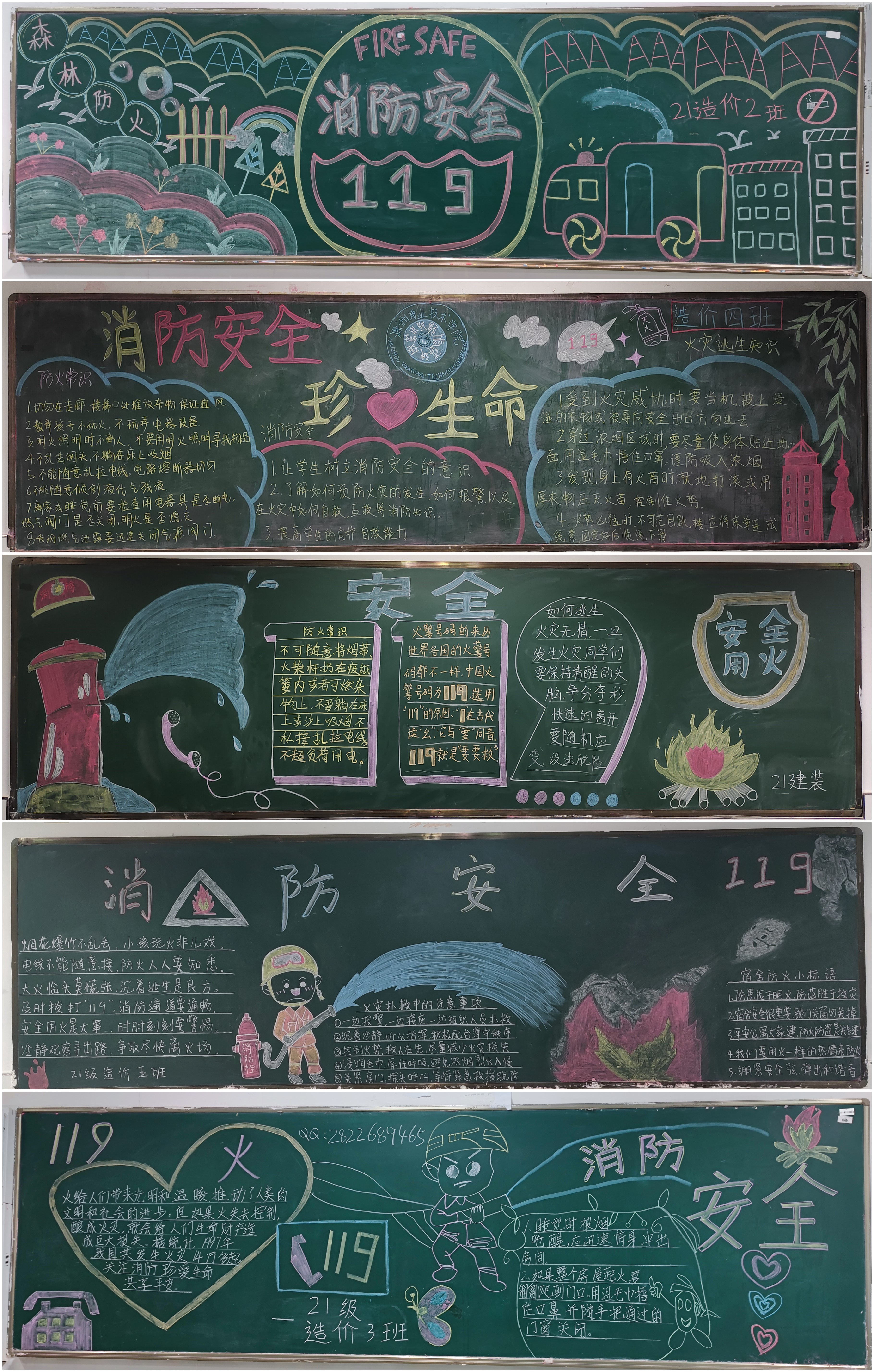 为更好地宣传、普及消防安全知识,提高学生的消防安全意识和自我救护能力,11月11日,建筑工程学院组织开展了“11.9消防安全”主题黑板报展示活动。通过学生们自己动手,收集、宣传消防知识,达到自我教育的目的。