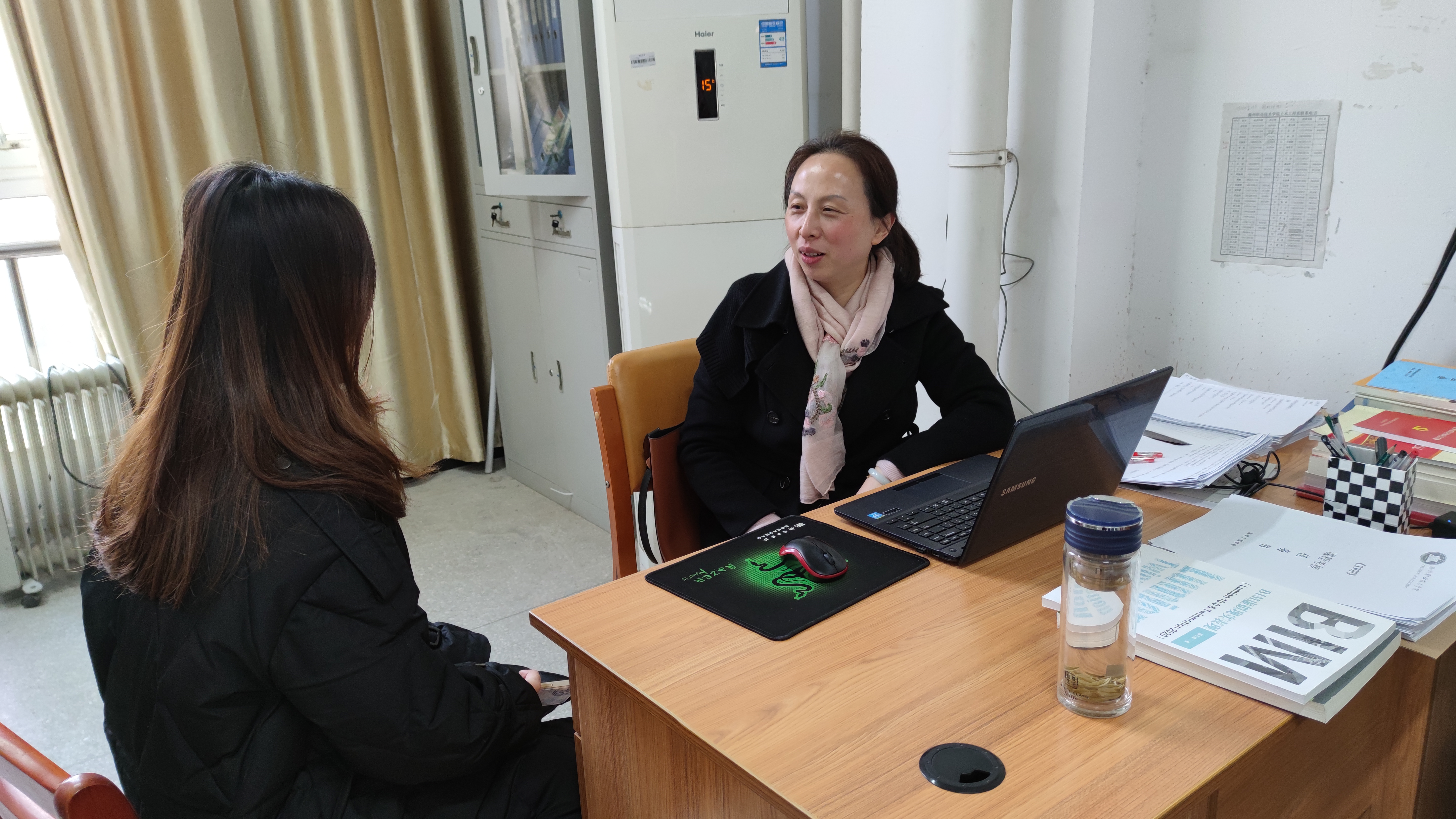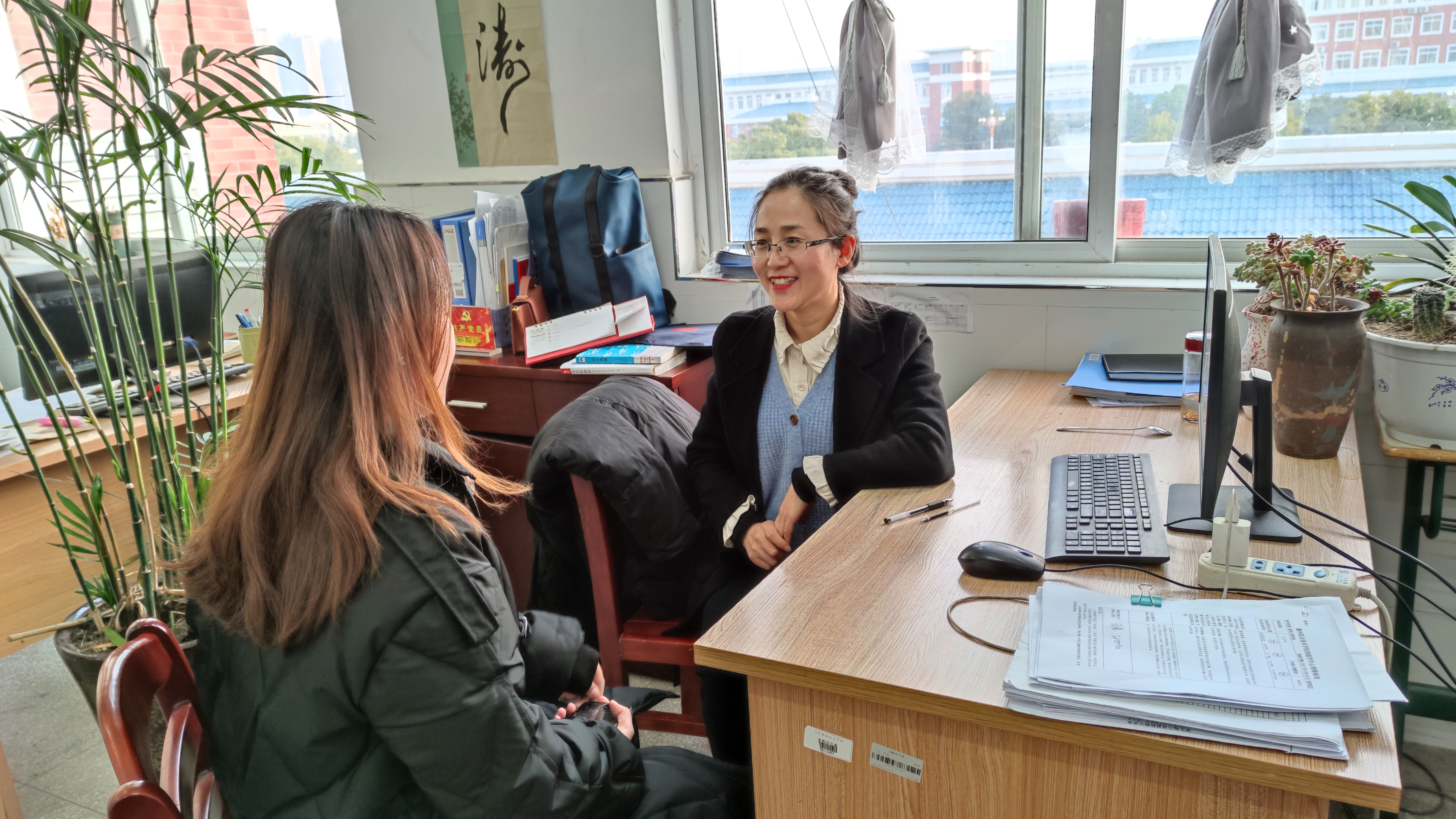 现在的学生心理成熟早,知识面广,但是心理障碍发生率高,各类心理异常问题的比率日趋上升。作为辅导员,安庆云老师会付出真情真心去关心关爱他们。以宿舍为单位,与学生进行交流,包括学习、生活各个方面,谈话氛围轻松,通过这个活动加强了与学生的联系并建立起良好的师生关系,主动了解学生的愿望和要求,掌握学生的思想动态和学习生活情况,对于有问题的同学及时给予正面引导和教育,有针对性地帮助学生处理好学习成才、择业交友、健康生活等方面的具体问题,帮助学生树立正确的世界观、人生观、价值观以及养成健康的心理品质。