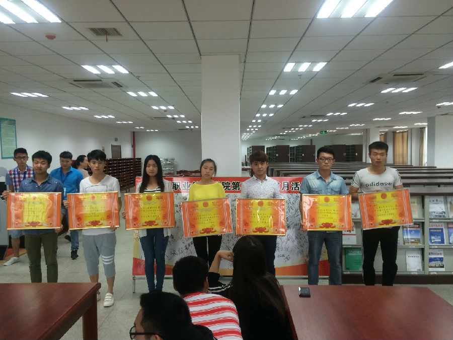 闭幕式上,图书馆工作人员分别为“读者之星”、“书山寻宝找书比赛”、“信息检索比赛”、“读书与创业”征文活动、“你演我猜”竞猜活动等获奖学生颁发证书和奖品,以资鼓励。本届读书月活动至此圆满落下帷幕,感谢我院师生的积极参与!