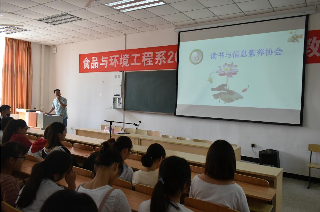 七是向同学们介绍了由图书馆刘涛老师创建并指导的读书与信息素养协会。本协会的宗旨是“梦想,读书,成长。”为梦想而读书,在读书中成长。欢迎同学们关注、了解和加入,参与社团活动,交流知识,锻炼能力。