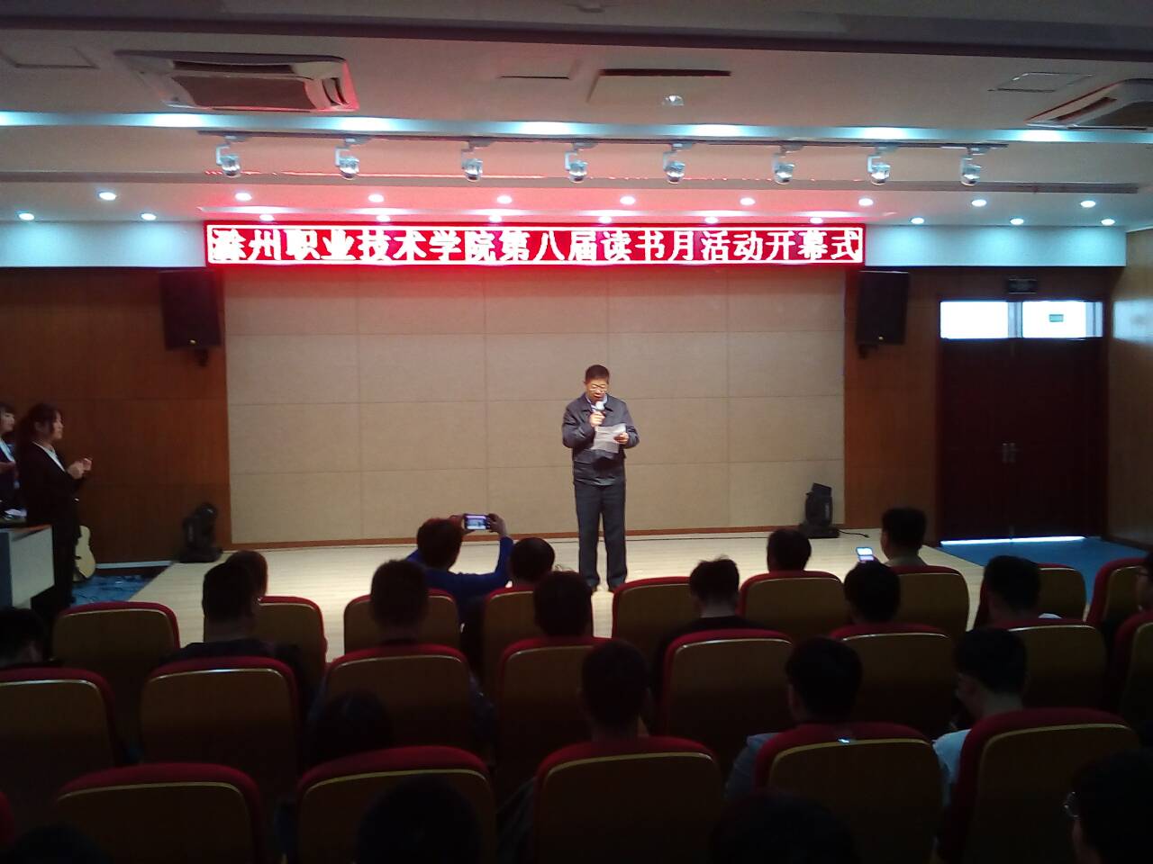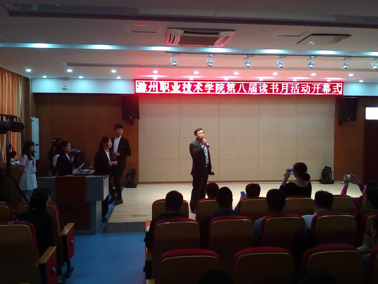 开幕式首先由院领导吴大明致辞。吴教授说,“书籍是人类文明的果实,是贮存知识的宝库,是人类进步的阶梯。在我们美丽的校园中,我们比先辈拥有了更优越的学习条件,能心无旁骛、日以继夜地遨游学海。”并勉励广大学子:“作为新一代读书人,要在学好专业知识之余,努力丰满自己的羽翼。志存高远,博览群书,在书中读出潇洒,读出豪放,读出深邃,读出意切情长。”