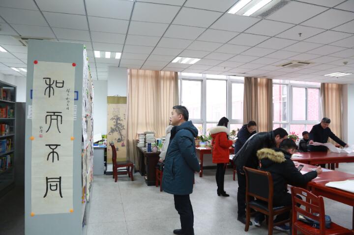为弘扬中华优秀传统文化,展示教职工书画才艺,12月18日下午,2020年“廉政•和乐”书画比赛在图书馆二楼英语资料室拉开帷幕。校纪委书记杨华龙、校工会主席陈学军、宣传部长兼学生工作处处长李平权与全校近百名书画爱好者一起观看、参加了比赛。