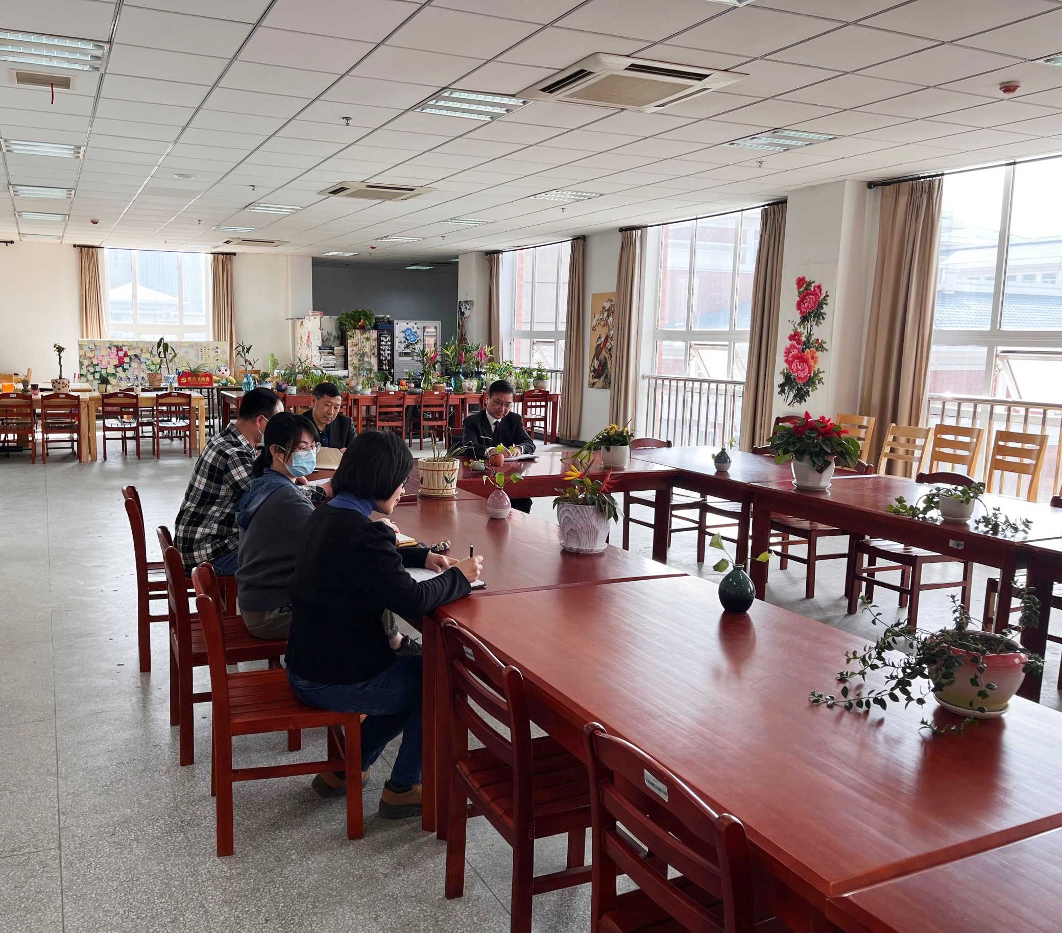 座谈结束后,王冬又重点查看了图书馆三楼和四楼自修室以及过刊阅览室的运行情况。他说,自修室建设符合广大学子读书自修的需要,要做好管理工作,切实维护好读者的利益。
