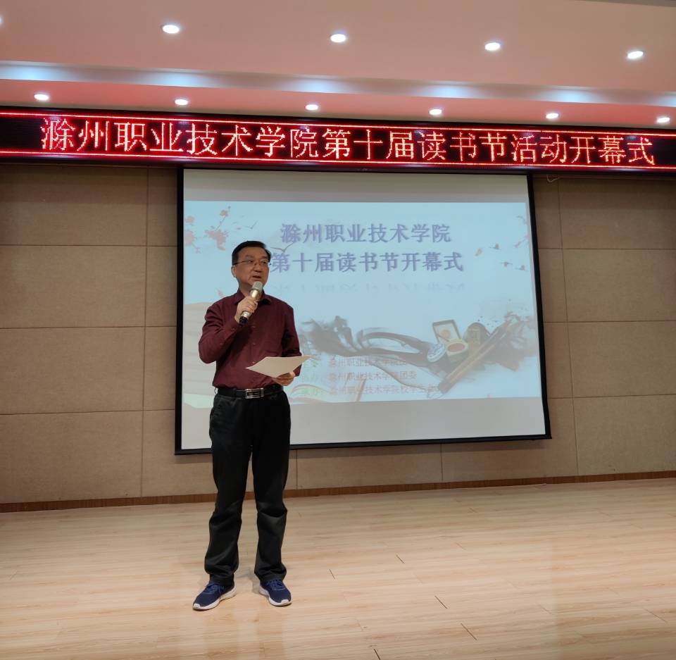 开幕式活动第一项,由王冬院长致辞。他重点提了几点建议,即读书要做好“五个结合”:一、读精与读杂相结合;二、读与思相结合;三、读与写相结合;四、读书与做事相结合;五、读书与做人相结合。最后,他向同学们呼吁:人的身体不可能是自由的,但是读书会让我们的精神实现自由。让我们开启读书吧,让我们的精神实现自由的翱翔。