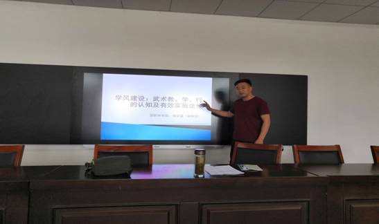 高校学风是大学精神的重要组成部分,是其社会影响力的重要标志。它包括学校的治学精神、治学态度和治学原则,综合体现在学生的学习动机、学习兴趣、学习态度和学习纪律等方面。良好的学风,对大学生的成长至关重要。2021年6月2日,体育部杨宝雷副教授在金沙威尼斯官网体育馆一楼多媒体教室,举行了《学风建设:武术教与学的进一步认知及有效实施途径》专题学术报告活动,吸引全校近百名师生前来交流与学习,产生了良好的学术活动效果。