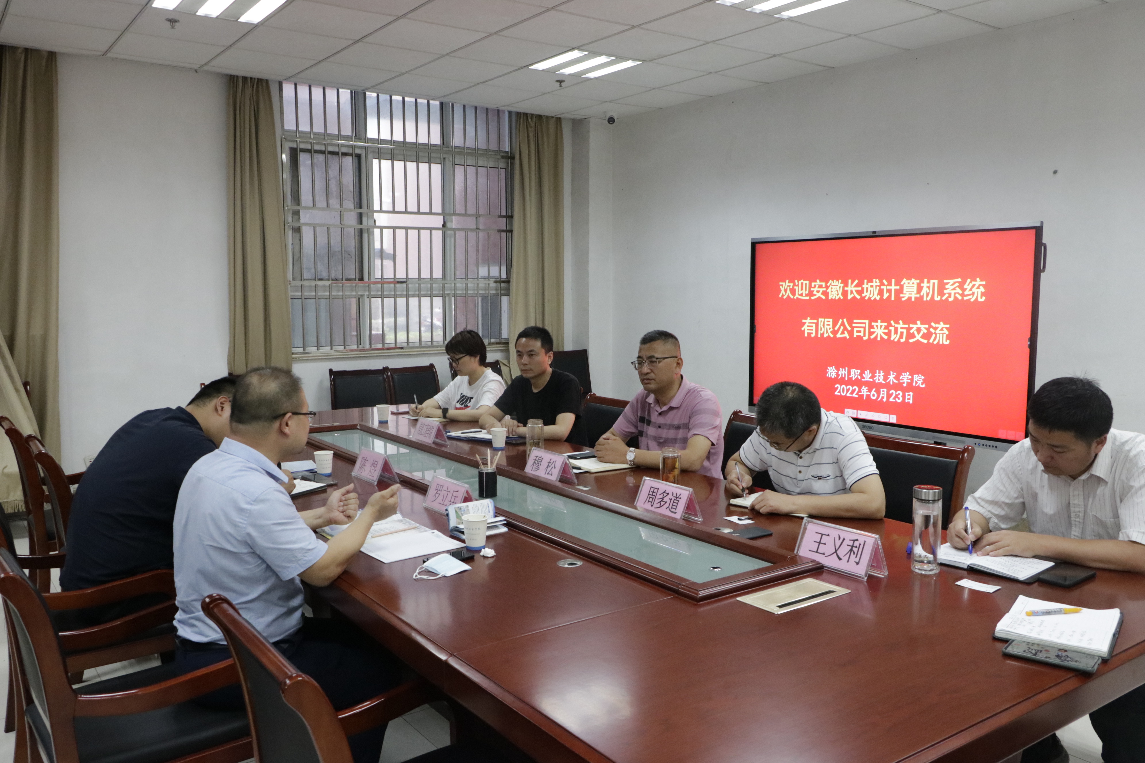 6月23日下午,中国长城科技集团股份有限公司人事部经理罗立兵携子公司安徽长城计算机系统有限公司总经理助理陈煜来校洽谈校企合作,校长助理、招生就业处处长、滁州职教集团秘书长穆松热情接待,信息工程学院及招生就业处相关负责人参与洽谈。