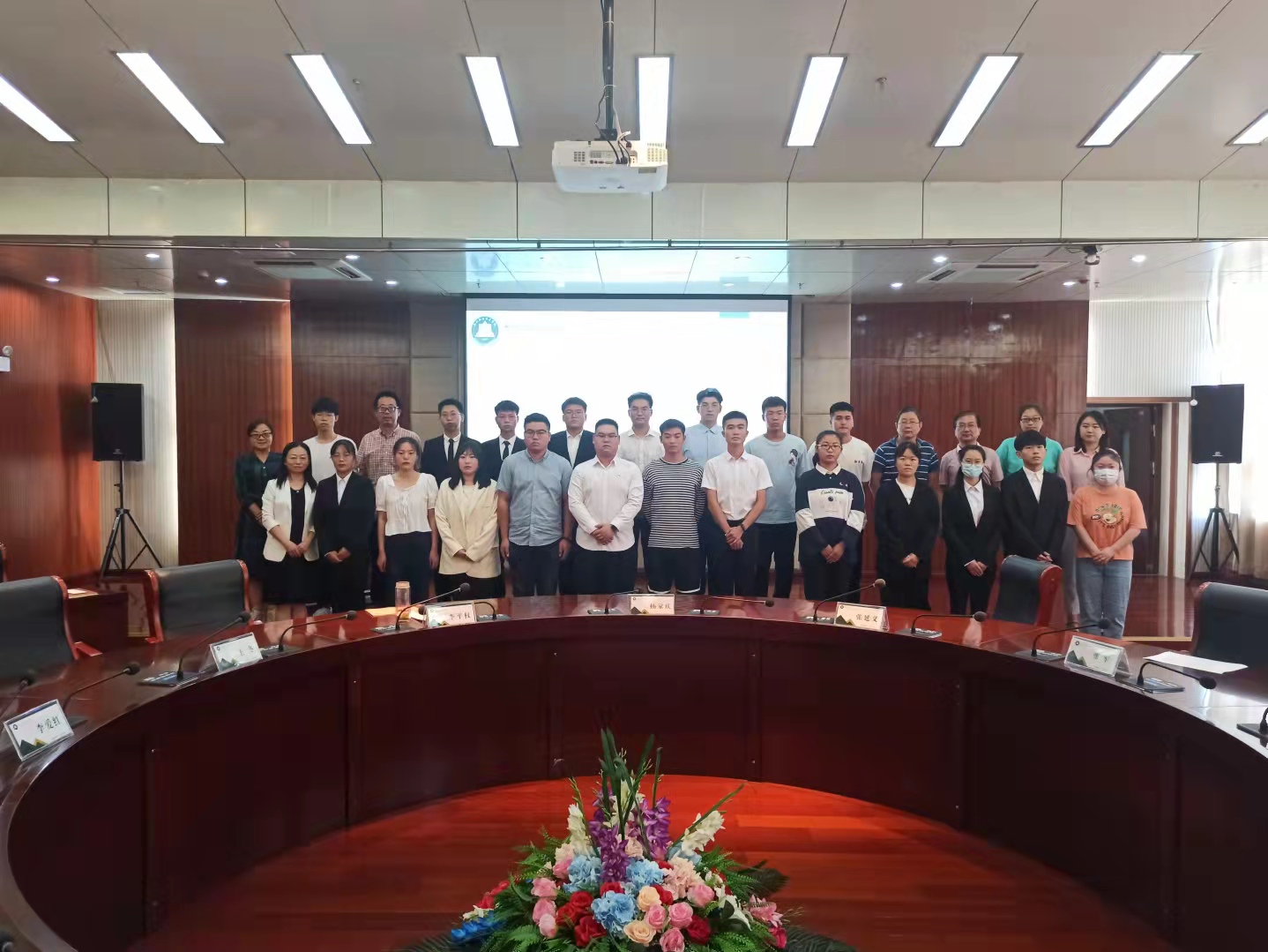 评审结束后,校领导向19名候选学生发放了“学生资助宣传大使”聘书,在场老师和同学们合影留念。