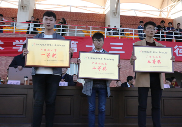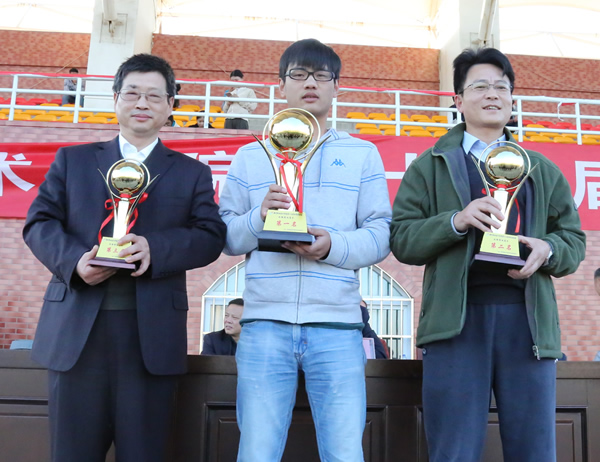 本届运动会总裁判长学院体育部程茂勇老师首先宣布了本届运动会各项比赛成绩。学院领导为荣获团体奖项的集体颁发了奖杯或证书。