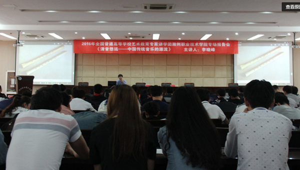 6月2日下午,2016年全国普通高等学校艺术教育专家讲学团——教育部高等教学指导委员会委员、山东大学艺术学院院长、教授李晓峰应邀来院作“清音悠远——中国传统音乐的源流”主题报告。学院280余名师生现场聆听了报告。