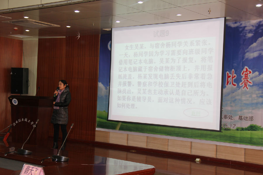 为推动和引领学院辅导员队伍职业化、专业化发展,促进辅导员之间相互交流、相互学习,进一步提高广大辅导员的职业能力和服务水平,根据学院整体工作安排和要求,自2015年11月23日制发《金沙威尼斯欢乐娱人城关于举办第二届辅导员职业能力比赛的通知》以来,在院领导的关心与支持下,在学生处的精心组织下,在组织人事处、基础部等相关职能部门的大力协助和各系部的积极参与下,学院历时近一个月的第二届辅导员职业能力比赛于12月18日圆满落幕。