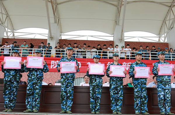 仪式上,学院副院长汪上宣读了军训表彰文件,表彰了在军训过程中表现优秀的连队,学院领导和部队首长为获奖代表颁发证书。