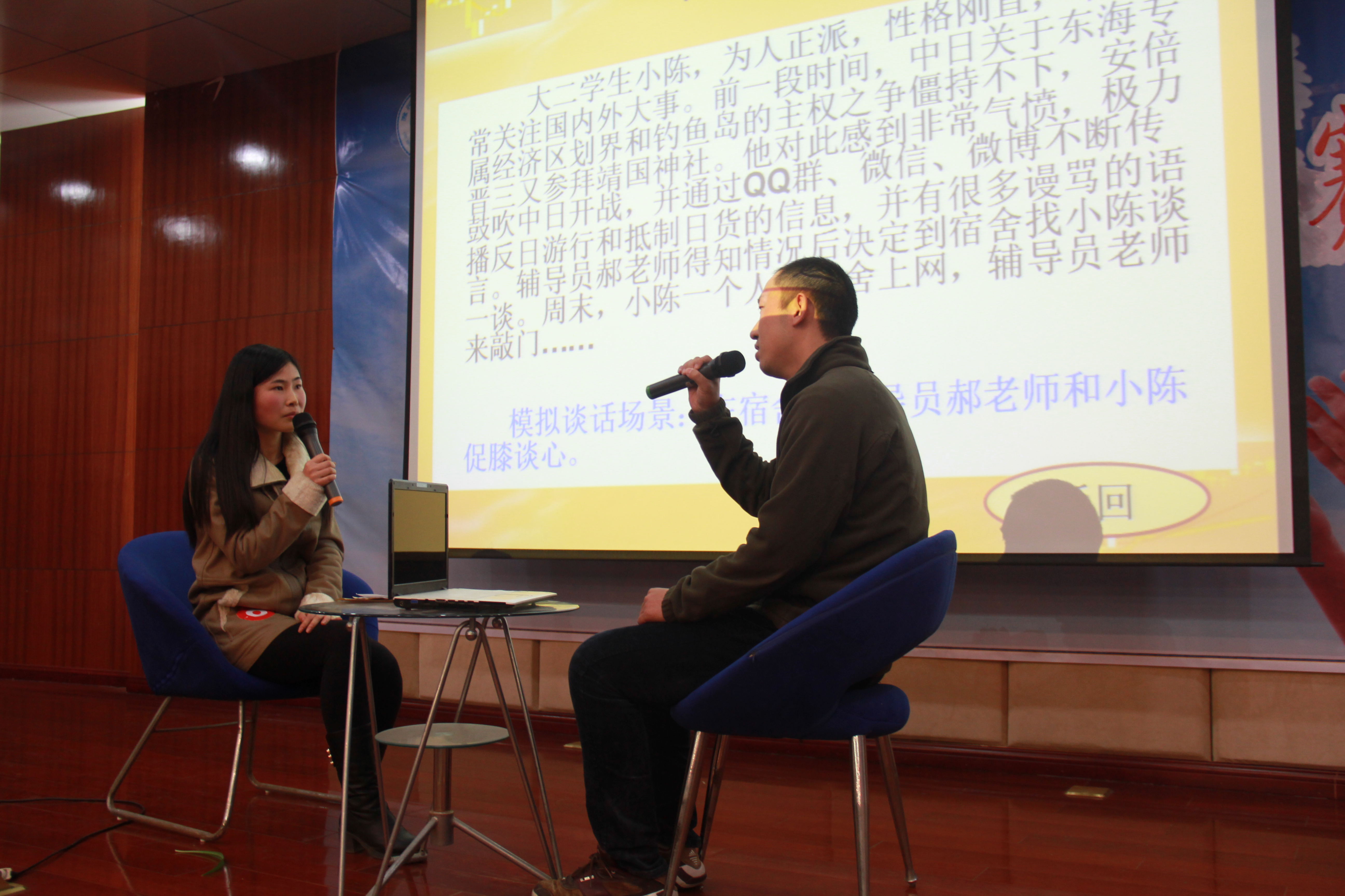 谈心谈话情景再现主要考察辅导员对相关知识的运用能力以及沟通技巧。选手现场抽题,根据题目要求,以情景再现的方式开展谈心谈话。