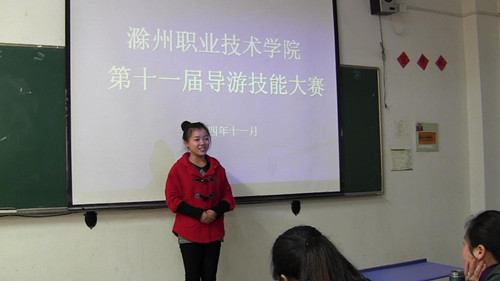 此次比赛的参赛选手以旅游管理专业的2013级和2014级学生为主。比赛要求各参赛选手进行5分钟左右的导游讲解,内容不限,并进行导游基础知识问答。评委们不仅要在选手中进行讲解技巧的评测,更要考查选手的专业基础知识与应变能力,最后围绕景点讲解、导游规范、应变能力、着装礼仪、基础知识和语言表达能力等五个标准对选手表现进行评分。经过一个小时的角逐,最终确定一等奖1名,二等奖2名,三等奖3名,其中,2013级旅游管理班学生储艳婷以富有个人特色的导游词、自然流畅的讲解、娴熟流利的应答表现摘得桂冠;刘芳菲、杨梦如、于孟孟、赵丹丹、吴云云等五名同学分获二、三等奖。