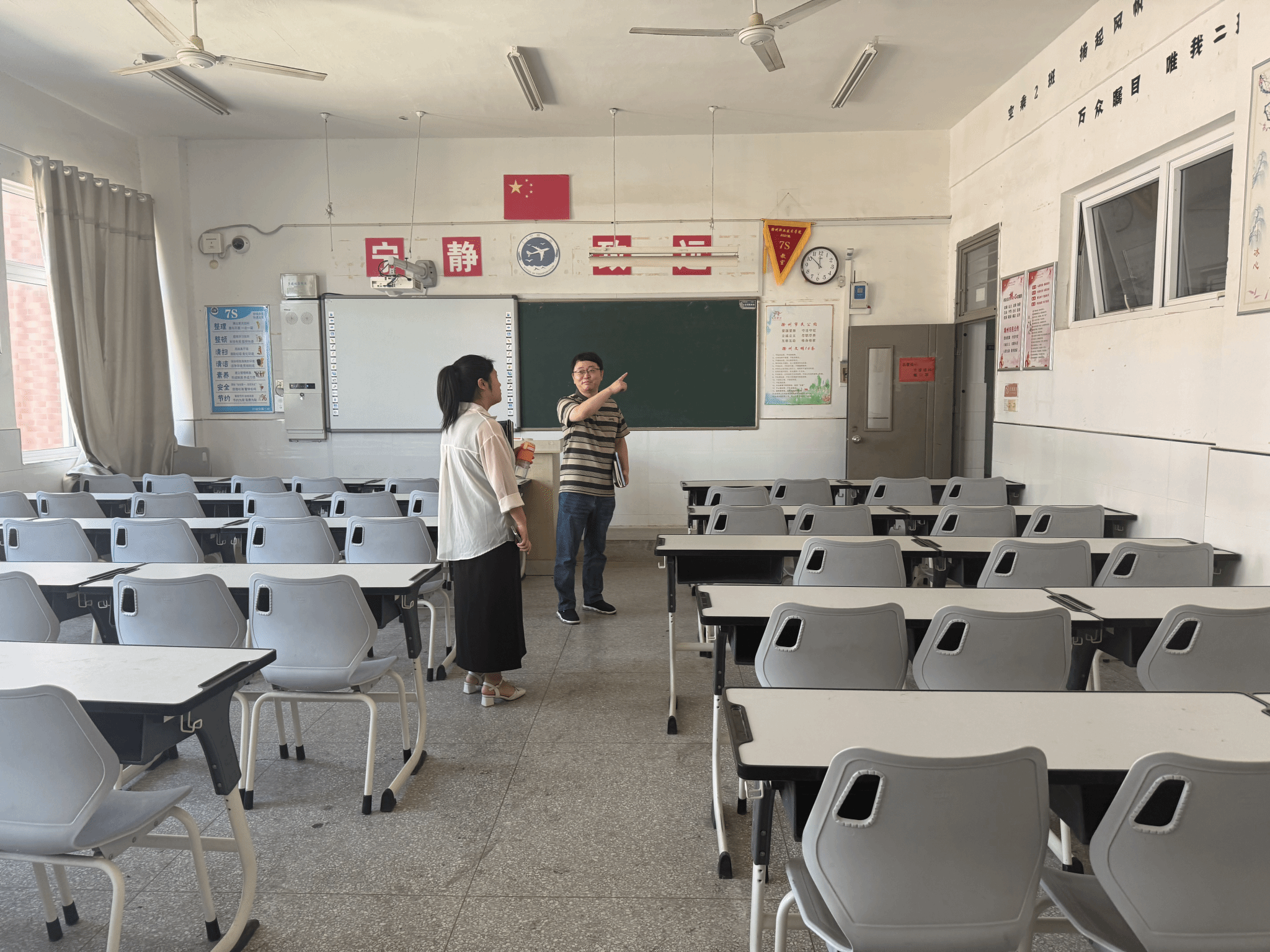 会后,朱亚春和学院教学秘书一起,对教室的设施设备、环境卫生、安全条件等进行了细致检查。