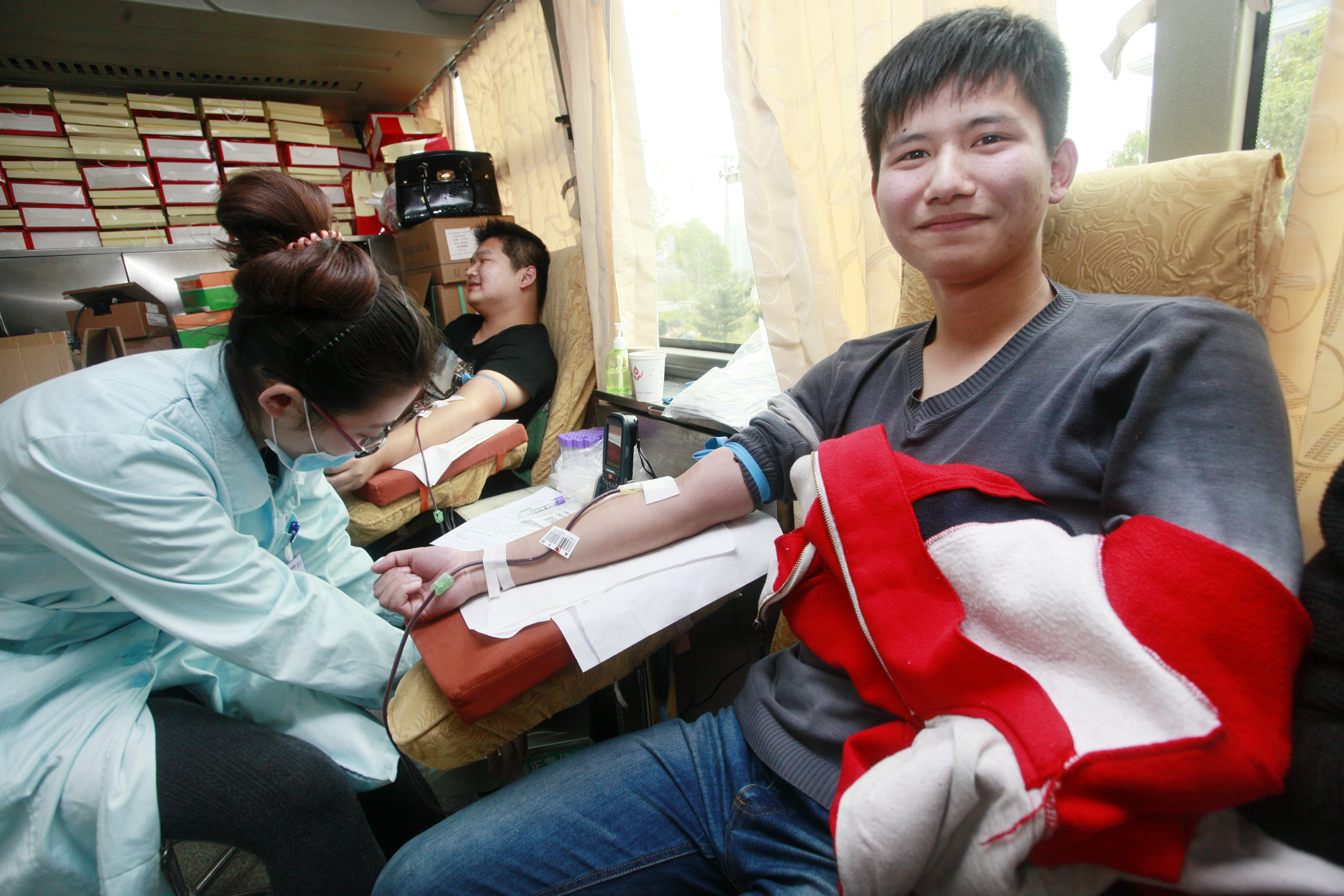 11月13日下午,滁州市中心血站的两辆采血车开进金沙威尼斯欢乐娱人城采血。参加献血的同学早早等候在食堂南门广场,排起了长长的队伍。在学生干部的组织下,同学们秩序井然的填表、量血压、验血型、献血、领取献血证。许多同学都是第一次献血,刚开始有些紧张,但在医护人员的鼓励下,渐渐地放松了,都能坚持按要求完成献血。献完血的同学都纷纷表示,以后有机会还会积极参与。