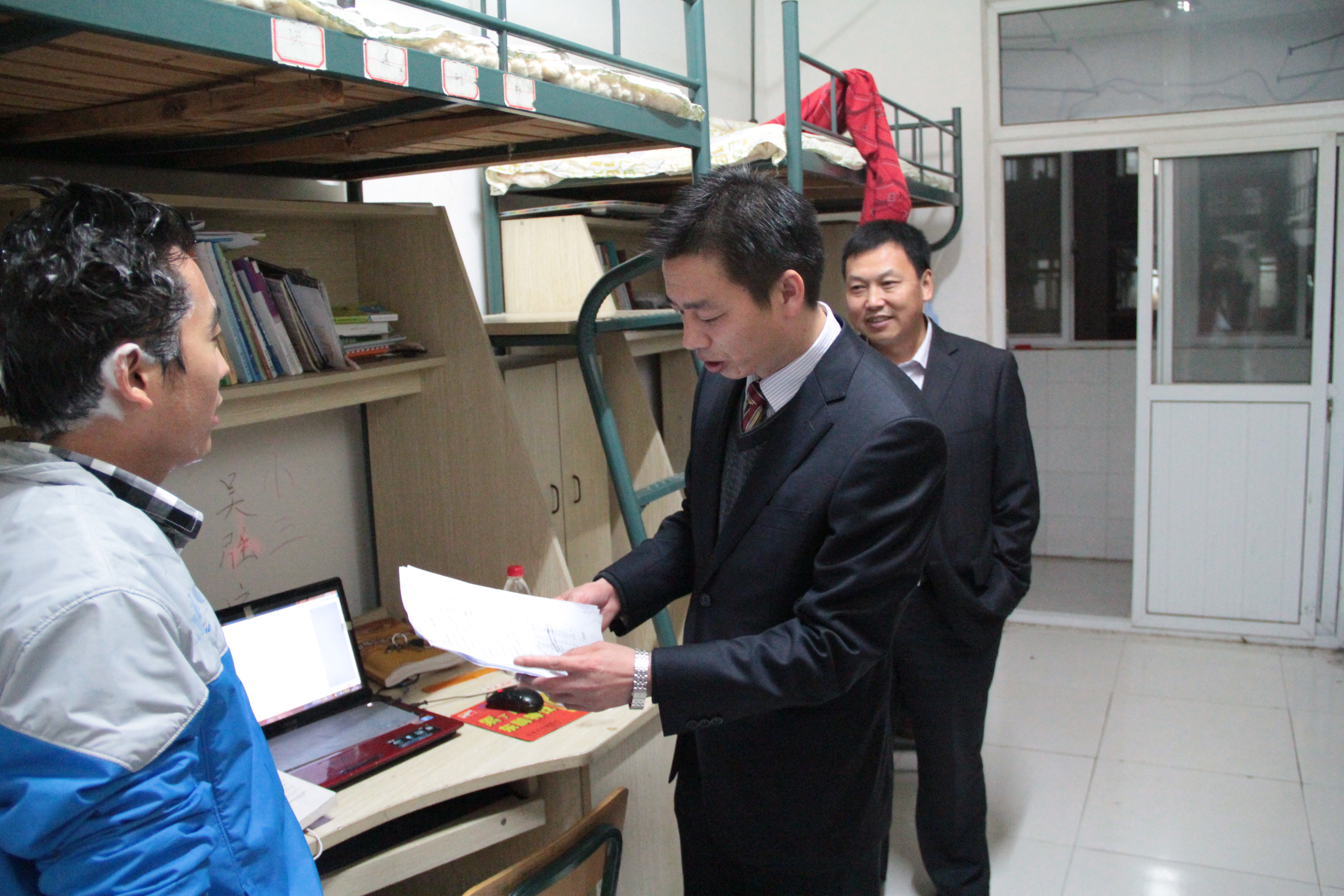 着力助推优良学风、校风建设,齐心共创平安和谐校园。为进一步了解学生当前的学习、生活状态,10月30日晚,学院副院长汪上在院学生处、团委、部分系部相关同志的陪同下,深入学生教室、寝室,巡视、检查学生的晚自习及就寝等情况。