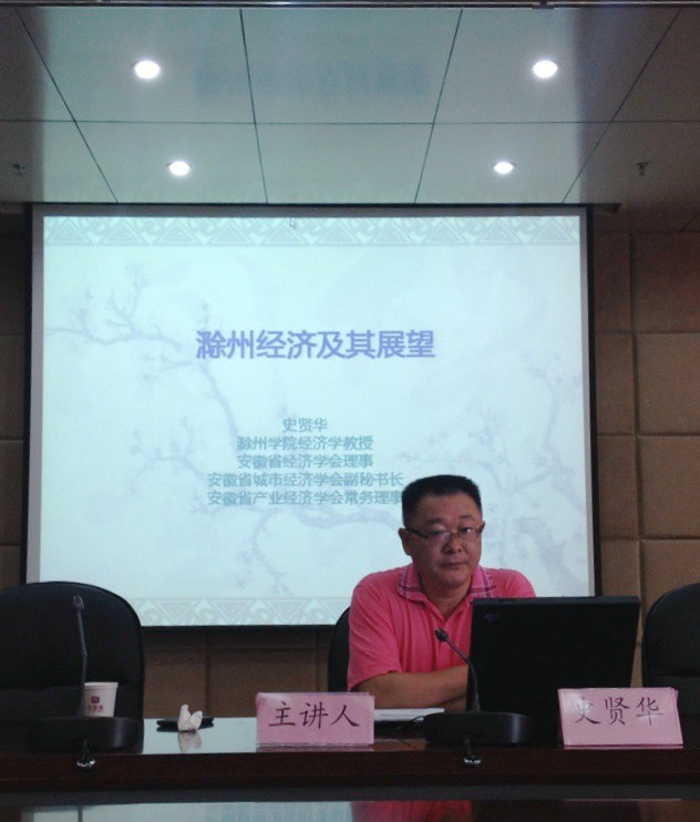 在报告中,史教授理论联系实际,结合其丰富的专业理论知识和科研、实践经验,运用生动鲜活的图片、详实的数据,以滁州市经济发展历程为主线,从滁州区域概况、经济现状、发展经验、突破与发展、滁州梦等五个方面,深入浅出的诠释了“滁州经济及其展望”这一主题。