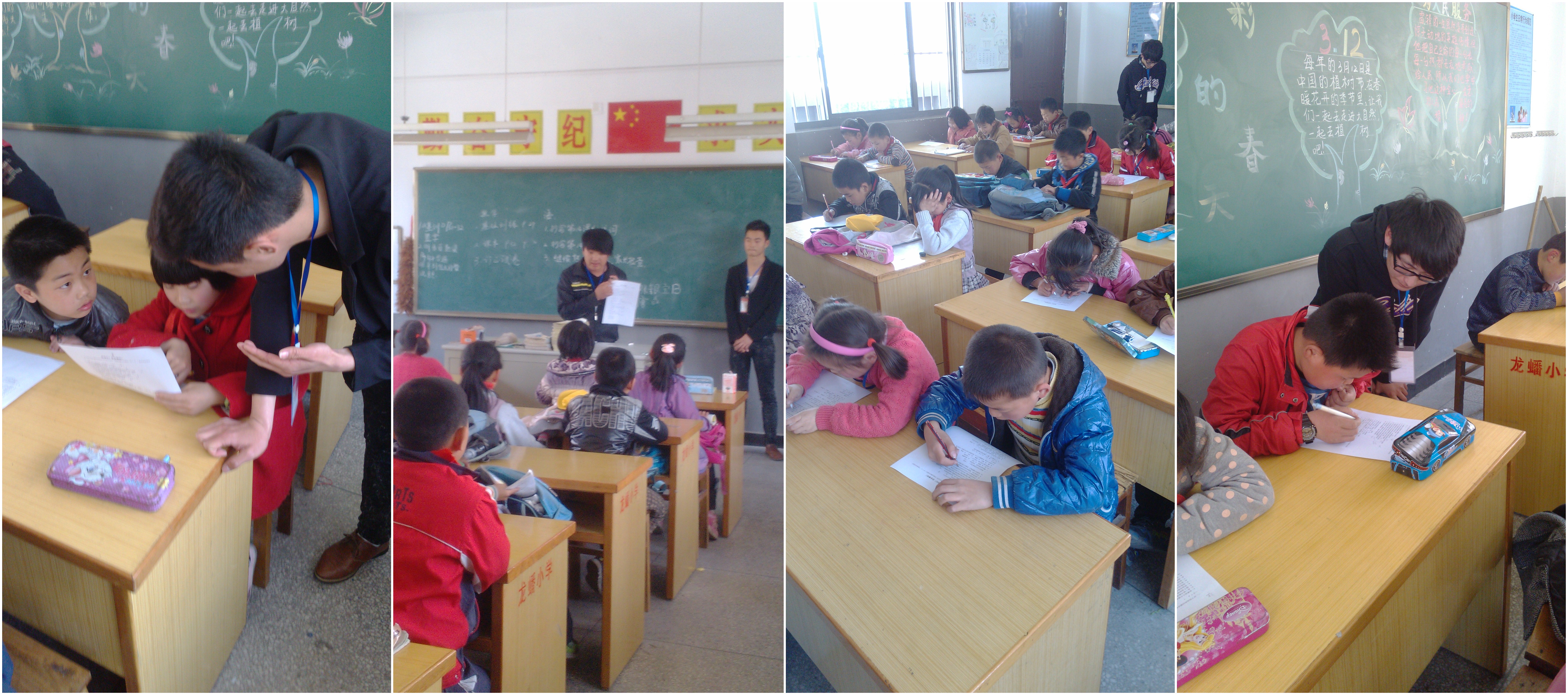 4月10号下午,在龙蟠小学老师的安排下,我们对龙蟠小学三年级的学生展开了一次测试,此次测试主要分为小学生的智力发展水平、学习的适应性、自我认知的客观化程度,及行为习惯四个部分。通过对测试卷的分析,可以看出有极少数学生存在对学习的厌倦,受父母吵架等问题的困扰,我们向校方反馈了测试结果,并希望他们多加强与学生和学生家长的沟通,向家长阐明家庭环境对孩子的影响,提起孩子对学习的兴趣,帮助孩子们健康成长。