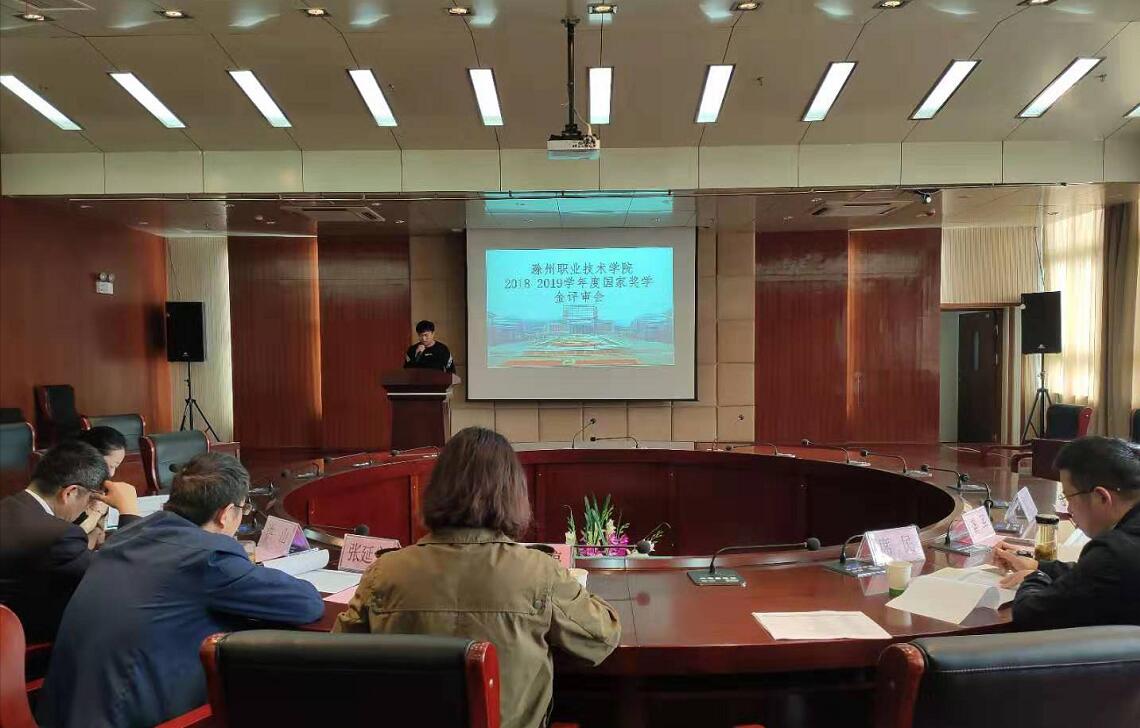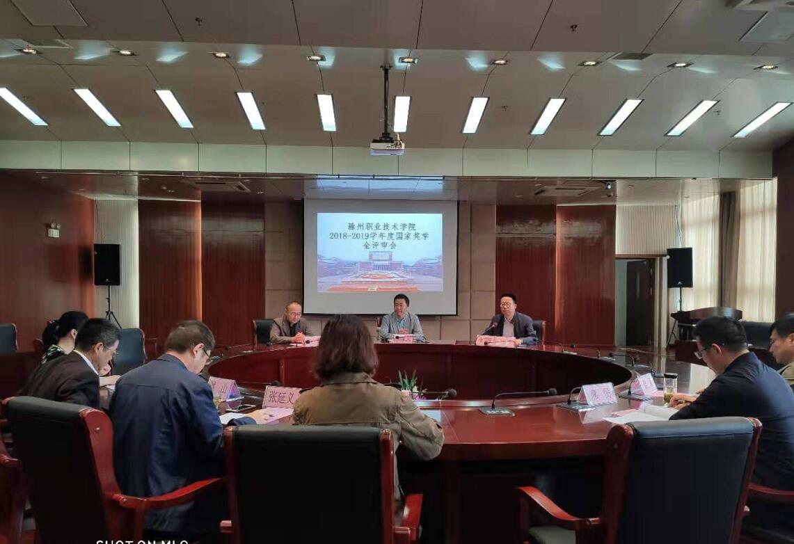 评审会评审专家组由滁州学院和滁州城市职业技术学院相关部门及本校教务处、财务处、基础部、学生处等部门的专家组成。会上,杨家庆书记就评审工作提出要求,首先肯定了优秀学生在校期间的努力和取得的成绩,指出国家奖学金评审虽是常规性工作,但每年的优秀学生代表都有不同的特点,应做到细致公正地对待每一位学生,强调必须严守工作纪律,本着一颗公平、公正的心,推选出最优秀的学生。金沙威尼斯官网资助服务科科长薛天飞就国家奖学金评审的前期工作、本年度推荐名单和初审情况等向评审小组进行了汇报。