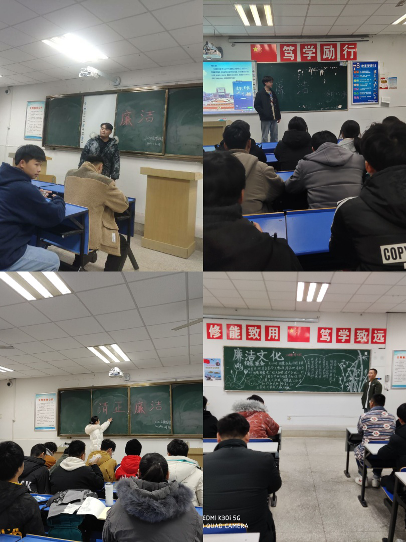 廉洁是中华民族传统美德。为宣传廉洁文化,普及廉洁知识,提高广大学生的廉洁素养,由建筑工程学院团总支组织各个班级开展“廉洁”团日活动。