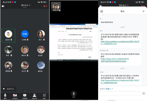 6月29日晚上八点,本科教育党支部以腾讯会议方式开展线上主题党日活动——“六亮行动”专题学习会。会议由本科教育党支部书记薛天飞主持,支部全体学生党员、入党积极分子、余道奎和杨付春两位辅导员老师参加会议。
