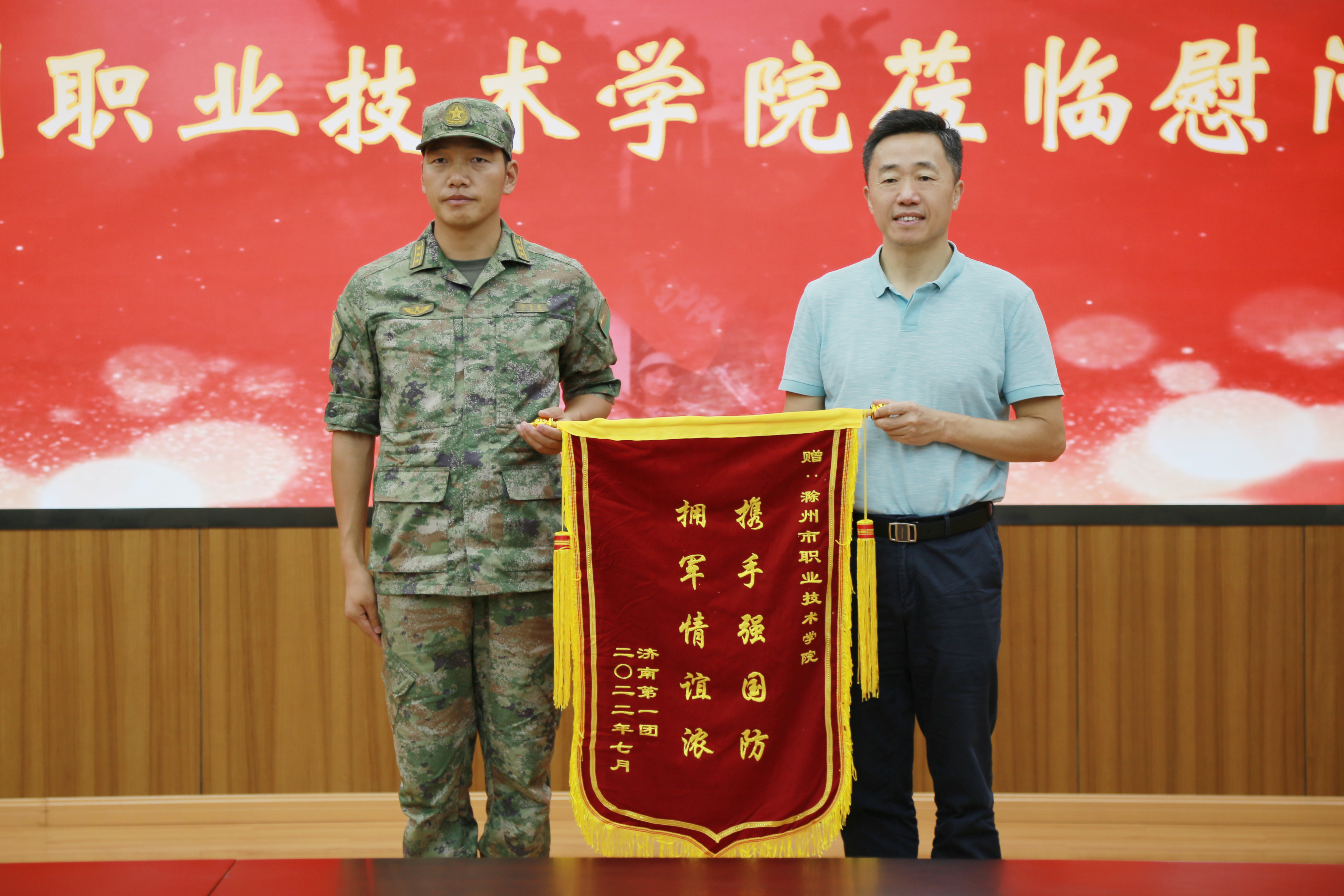 7月29日上午,在中国人民解放军建军95周年来临之际,金沙威尼斯欢乐娱人城党委副书记杨家庆一行赴驻滁部队开展“八一”慰问活动。安徽滁州技师学院党委书记余君琳、办公室主任张梅,金沙威尼斯欢乐娱人城学生工作处副处长张军等随同前往。