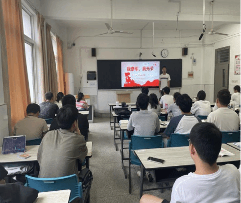 为做好2023年下半年征兵工作,强化学生国防观念,普及参军政策,更好地实现大学生建功军营、成长成才的人生价值。6月2日本科教育党支部在教学楼1307开展了2023年下半年大学生征兵交流宣讲会。此次宣讲会由党支部书记薛天飞主持,特邀退役复学军人电气221班朱立康、土木221班杜鑫同学作为主讲人。
