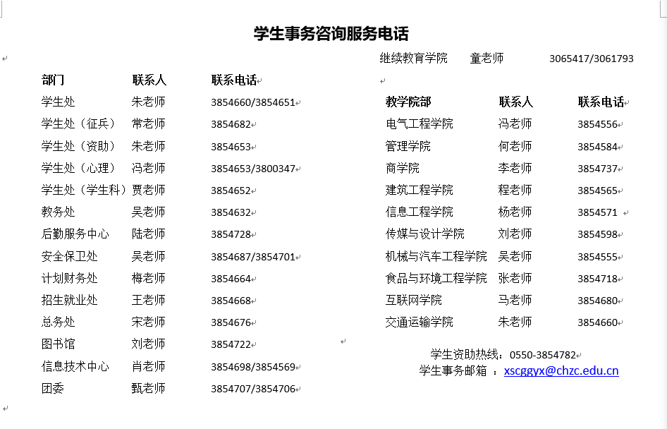 学生事务咨询服务电话