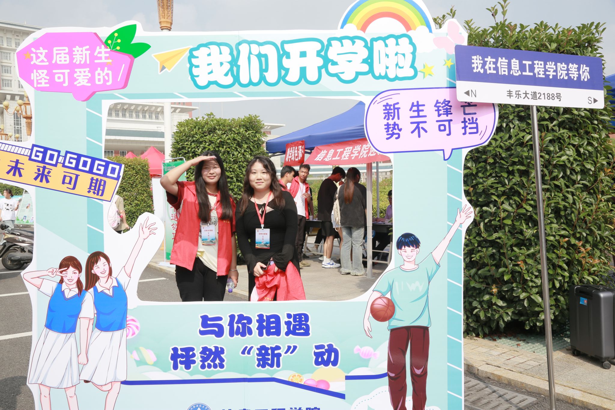 此外,各学院结合自身办学特色精心设计迎新展台,用个性打卡点、创意周边等为新生营造了热烈的开学氛围。学校采取线上线下联动方式,在校园内打卡拍照即可参与开学季征集活动,各大校内网络平台形成新媒体矩阵,学校公众号每日推送新生福利、新生入学指南等图文视频,畅通报到信息渠道,确保新生迎新工作顺利有序开展。