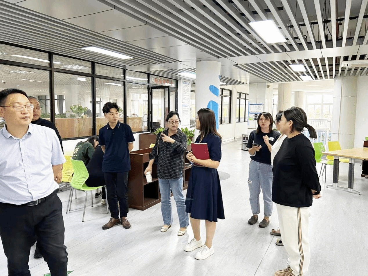 会后,在陈克明馆长等人的陪同下,史晓云等人参观了该校图书馆流通借阅室、自修室、悦读空间和电影放映室等。