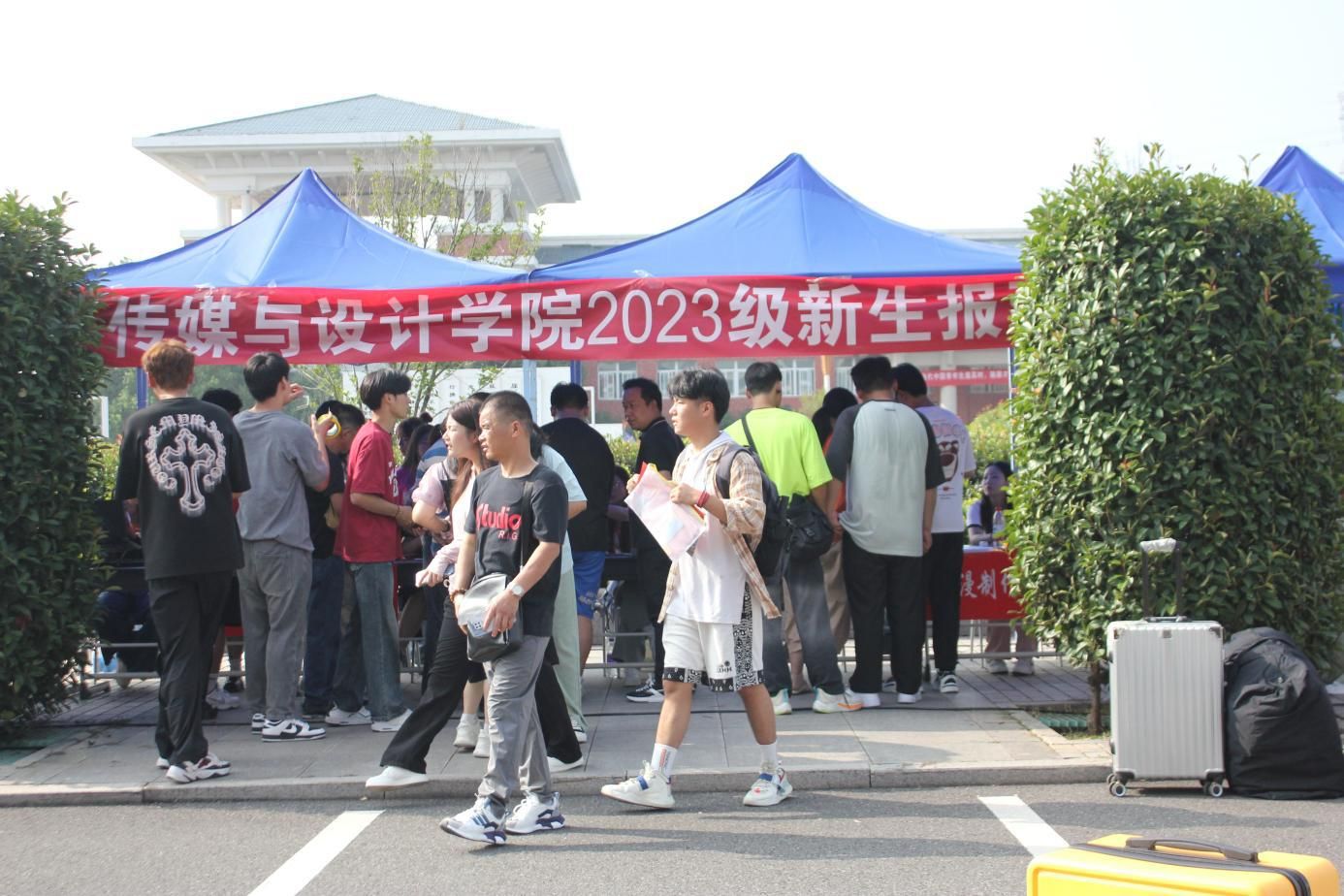9月8-9日是2023级新生的报到日,金沙威尼斯欢乐娱人城传媒与设计学院2023级新生们迎着骄阳,怀揣梦想,陆续来到校园。