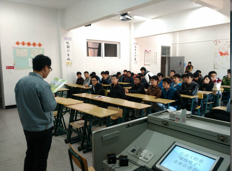 许多应届毕业生前来听讲,其中也有部分大一,大二的同学为了今后更熟悉招聘前来听讲。首先,康佳的人事部经理为同学们介绍了康佳的规模,让大家对康佳有一个初步的认识。其次有康佳的厂长进一步讲述了康佳员工及管理人员的薪资福利及发展方向。最后由康佳的一位技术领域发展的人员讲述了自己在康佳的发展历程,让在场学生非常感兴趣。在场的同学们也提出了一些实际的问题,并得到了令大家满意的回答。这场宣讲会取得了预期的效果,让同学们了解到用人单位对人才的需求在同学中引起了较好的反响。