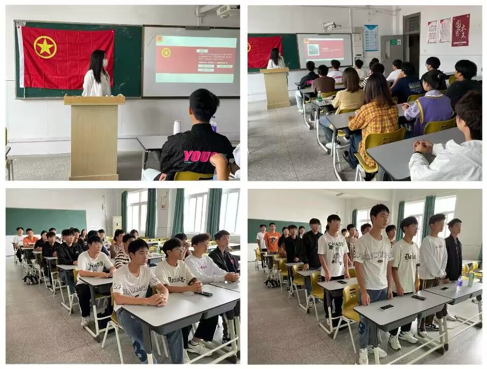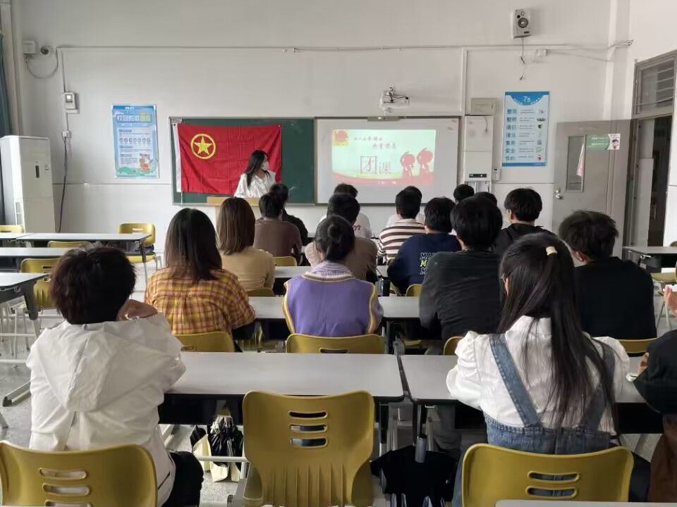主讲人丁婷从三个方面进行讲解,带领入团积极分子们围绕“共青团的历史”、“共青团的知识”、“争做新时代团员”开展学习,向同学们讲述了“团旗、团徽、团歌、团员证、入团誓词”的来历和历史意义,随后带领全体同学齐唱团歌。也让同学们明白“共青团员”不只是一个称号,更是一种担当与责任。同时,大家也清楚了解到党和共青团员对当代青年的重要意义,更加坚定加入共青团的决心。最后,主讲人丁婷表示,希望同学们可以努力成为一名合格的共青团员。