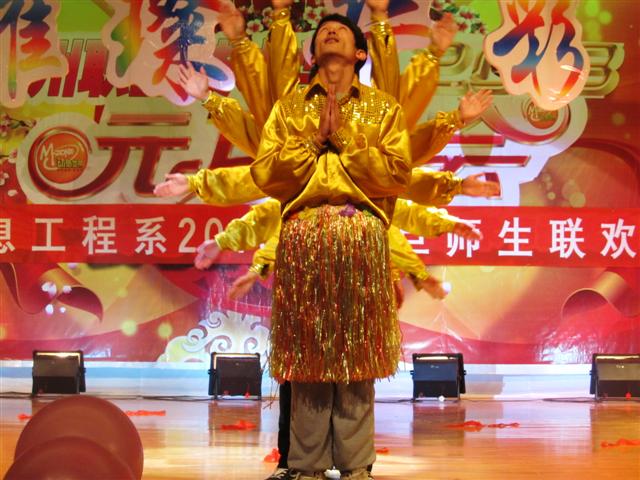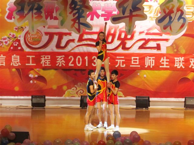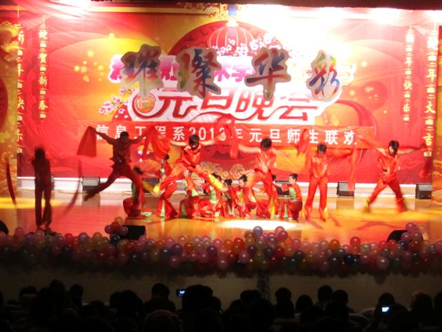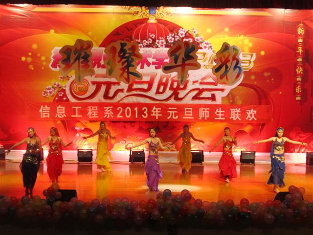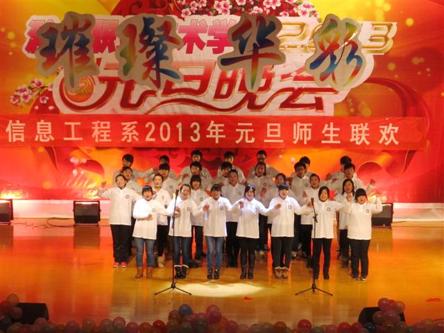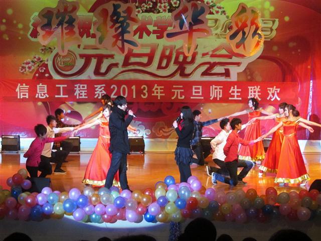 舞袖翩翩,浓墨重彩展现今日成就;华章谱就,激情昂扬共赴明日征程。2012年12月29日下午三点,金沙威尼斯欢乐娱人城新报告厅内歌台暖响,青春洋溢。信息工程系“璀璨华彩”2013年元旦师生联欢会在此火热开场,院团委和我系领导与广大师生欢聚一堂,享受节日的喜悦,感受元旦的氛围,共同庆祝新年的到来。