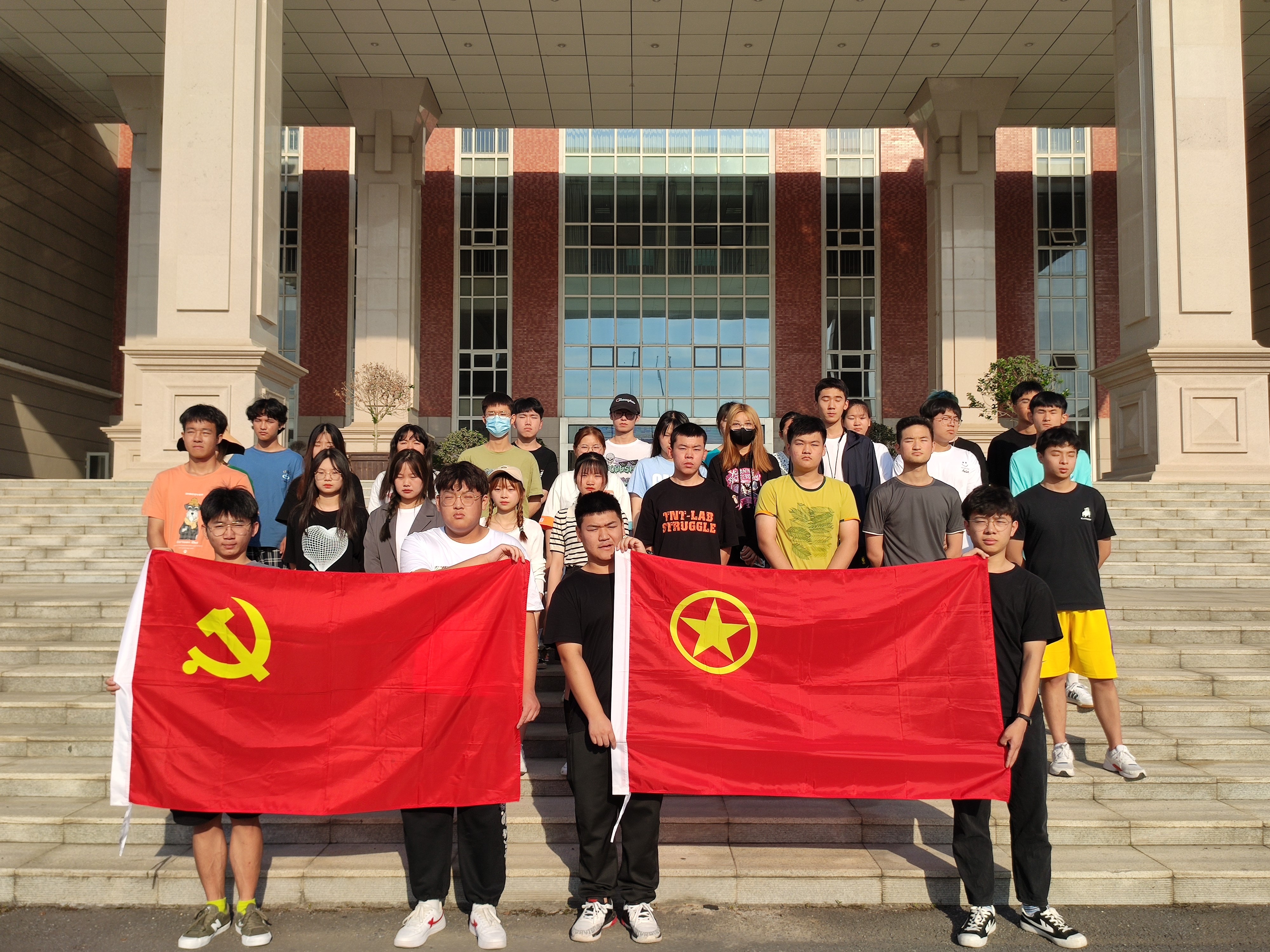 为了让同学们在缅怀革命先烈中传承红色基因,在踏寻红色足迹中发扬革命精神,引导同学们认真学习掌握党史知识。6月23日早晨,信息工程学院团总支在综合楼门前开展了“学党史 强信念 跟党走”主题升旗仪式,我院所有共青团工作者参加。