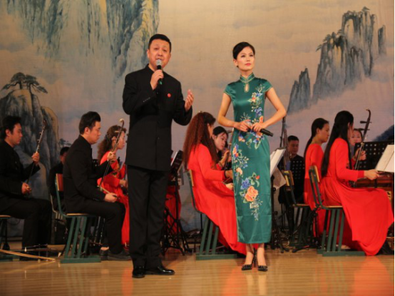在主持人一段声情并茂的开场白后,“徽风皖韵进高校”演出正式拉开帷幕。一曲曲黄梅戏的演唱,将“徽风皖韵”的主题展现的淋漓尽致,那字正腔圆、委婉清晰、声情并茂的演绎,如行云流水,为我们带来一场视觉和听觉上的盛宴。从《打猪草》、《女驸马》到《江姐》、《对话》等13个节目无不体现了黄梅戏文化的魅力。