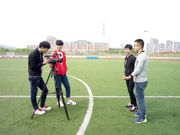 下午2点我系记者团的小伙伴们带着摄像机,分别在篮球场、操场、学校食堂门外随机采访了路边走过的同学。在操场上,我们采访了 两个在练太极拳的同学,他们积极地配合了我们的采访项目,当我们问到你最想对你辅导员说什么的问题时,他们腼腆地答道,希望自己的辅导员越来越年轻,越来越美丽并表示他们很尊敬自己的辅导员。在篮球场时,我们特意邀请了2个打篮球的同学进行录像,他们在采访的过程中透露,希望自己的辅导员在管理班级的时候能更加合理点,能够花更多的时间与他们交流。