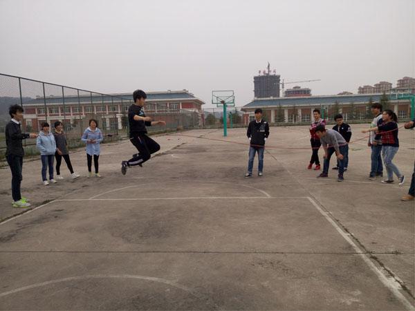 2015年3月30日下午,伴随着春天的气息,信息系软件二班的同学在操场进行了一场跳长绳比赛。本次比赛共分成三队,在规定时间内跳的多的队伍获胜,最后所有同学在一根绳上一起跳,个数超过5个后结束比赛。