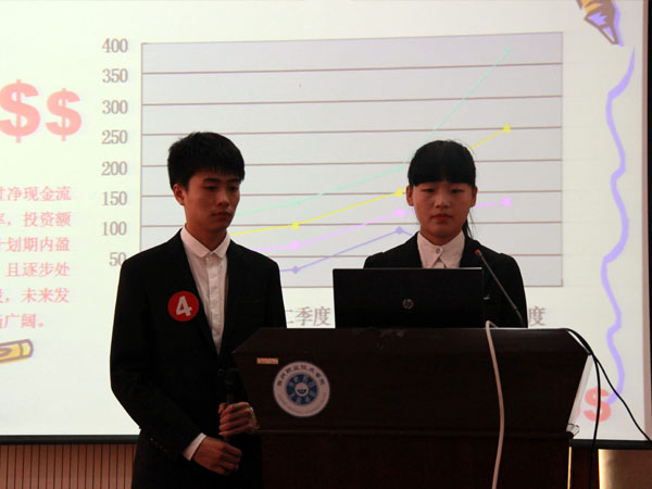 我系选手针对项目介绍、市场分析、竞争分析、财务分析、人力资源分析、风险分析等方面内容进行了全面介绍,激情洋溢地阐述了自己的创新思维与创业理念。他们精彩的表现,激情的演讲,缜密的思维,得体的肢体语言,不时博得现场观众的热烈掌声。