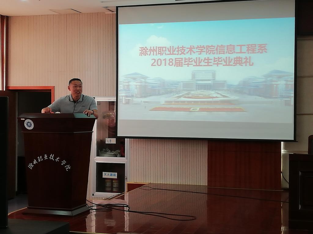 6月24日上午,在金沙威尼斯欢乐娱人城信息工程系2018届毕业生毕业典礼上,我系党总支书记程洪斌给全体毕业生上了最后一课,主题为“立足现在,放飞梦想”,为本学期书记讲规工作画上句号。